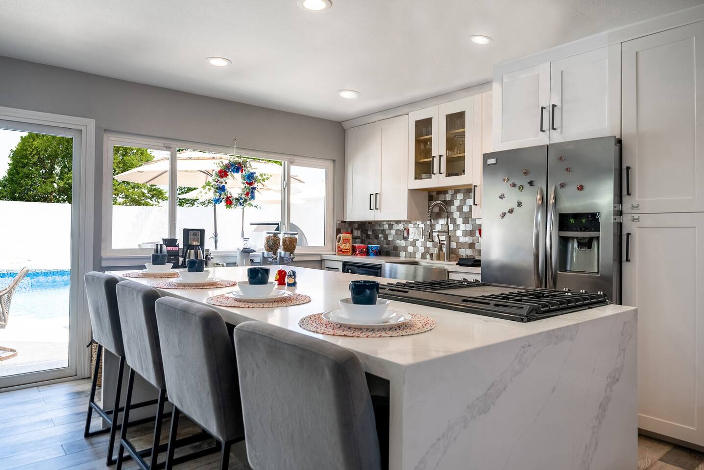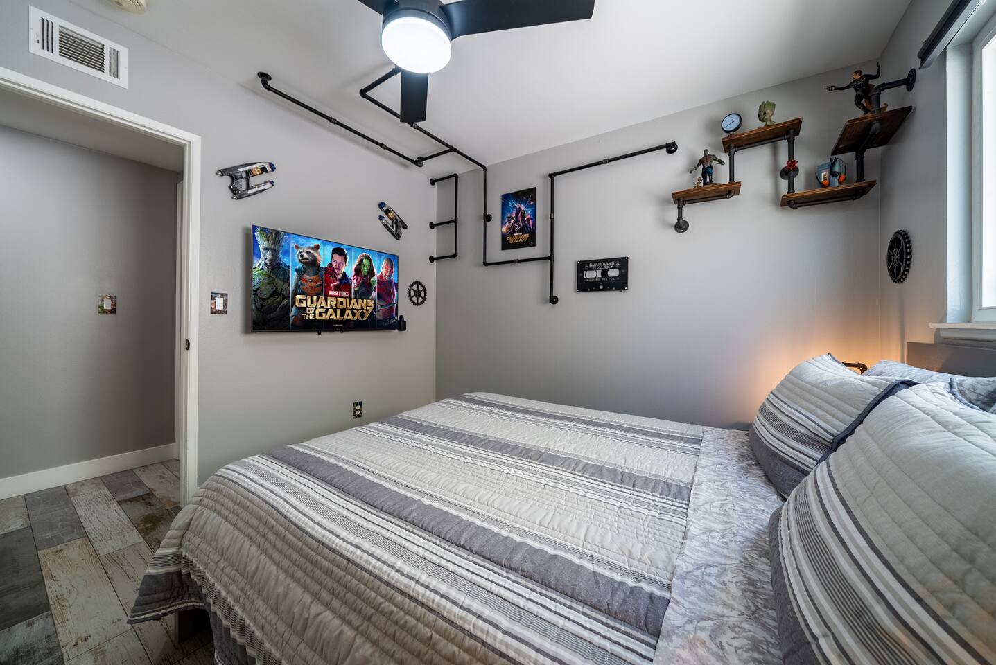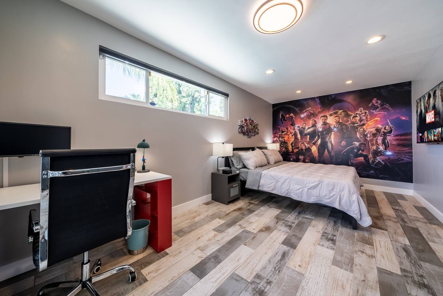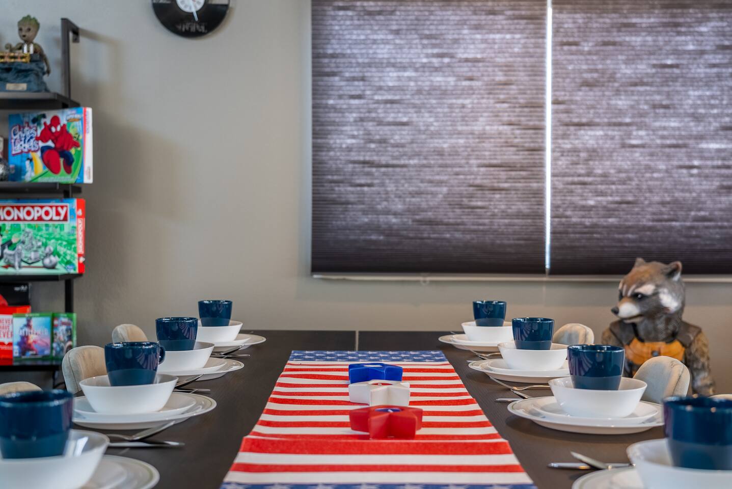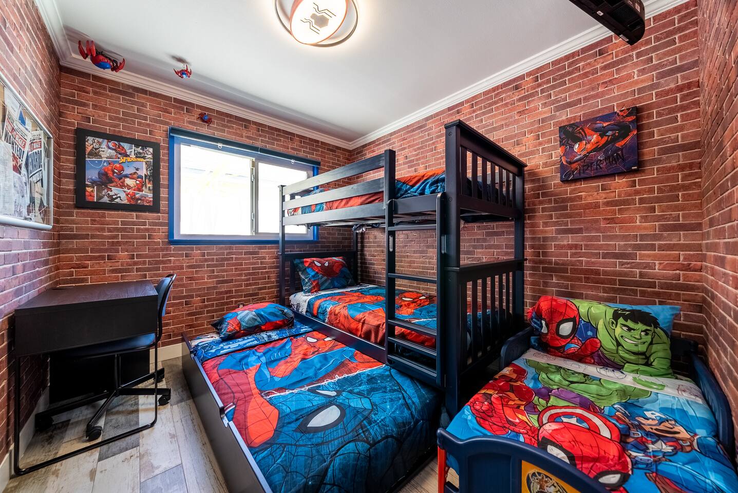 ๐ฆธโโ๏ธ Welcome to the Avengersโ Headquarters! ๐ Suit up, heroesโitโs time to step inside the ultimate superhero hideout! Whether youโre here to train, strategize, or just unwind after saving the world, this Marvel-themed retreat is packed with legendary amenities to help you recharge and assemble for your next mission. From the life-sized hero statues to Tony Starkโs private garage-turned-movie theater, every corner is designed to immerse you in the Marvel Universe! ๐ฅโจ Your journey begins in the living room command center, where youโll find heroic memorabilia from some of the greatest battles ever fought, and leads to a high-tech kitchen perfect for cooking up a feast fit for a team of superheroes. Choose from three epic sleeping quarters, each inspired by a Marvel legend, to rest and refuel. Outside, unwind in the heated pool or plan your next operation in the fully equipped backyard base. But the most important mission awaits! ๐ฆนโโ๏ธ Take part in the Avengers Scavenger Hunt and help Earthโs Mightiest Heroes defeat Thanos and save the world! ๐๐ Complete challenges, find hidden clues, and secure the Infinity Stones before itโs too late! โก Avengers, Assemble! ๐ฆธโโ๏ธ โ LIVING ROOM/GAME ROOM โ ๐๏ธ๐ฎ Gather in the living room and make memorable moments with your family, under the watchful eyes of Iron Man, Rocket, Captain America, and Spider-Man! ๐ฆธ Play classic board games ๐ฒ, challenge your team on the Xbox ๐ฎ, or compete in a game of pool or ping-pong! ๐ ๐๏ธ Two Super-Comfy Sofa-Beds for your entire team ๐บ Smart TV with Netflix, Disney+, HBO, Hulu & more streaming options ๐ฎ Xbox One Console with a full roster of video games ๐ฒ Classic Board Gamesโperfect for some low-stakes fun ๐ฑ Pool/Ping-Pong Table Combo for heroic challenges โ THE AVENGERS GALLEY โ KITCHEN & DINING โ ๐ฝ๏ธ๐ฟ Channel your inner Tony Stark and whip up meals in the fully equipped kitchen! With spacious countertops and a central kitchen bar, itโs easy to prepare a feast for your team. ๐ซ Serve up heroic dishes at the dining table with Rocket Raccoon standing by! ๐ ๐ณ High-Tech Appliances: Microwave, Oven, Stove, Refrigerator โ Coffee Station with Complimentary Coffee & Tea ๐ฟ Popcorn Popper for Movie Nights ๐ฝ๏ธ Full Set of Hero-Worthy Cookware & Utensils Feast with the Avengers: ๐ด Dining Table for 8 heroes ๐ฝ๏ธ Kitchen Bar Seating for 4 recruits ๐ฅฃ Complimentary Breakfast Cereal & Snack Basketโperfect for late-night missions โ SUPERHERO QUARTERS โ 3 BEDROOMS โ ๐๏ธ๐ฅ Retreat to one of the three themed quarters, each dedicated to an Avengerโs legacy! Whether itโs planning your next move from Tony Starkโs workspace or bunking with Spider-Man on his next mission, youโll find everything you need to recharge for your next battle. ๐ก๏ธ ๐ Bedroom 1: The Stark Suite - King-Size Bed + Workspace for strategizing with Tony - Ensuite Bathroom + 4K Smart TV for late-night intel - Stark-approved decor and tech ๐ Bedroom 2: The Guardiansโ Hideout - Queen-Size Bed with Guardians of the Galaxy theme - 4K Smart TV for movie marathons - A galactic haven to escape Ronanโs wrath ๐ท๏ธ Bedroom 3: Spideyโs Bunk - Bunk Bed (Twin/Twin) + Trundle for extra recruits - Toddler Bed for junior superheroes-in-training - Spider-Man theme and secret desk ๐ค Premium Linens, Super-Soft Pillows, and Heroic Decor in every room ๐บ Smart TVs in each bedroom to keep up with mission reports โ TONY STARKโS GARAGE: MOVIE THEATER & ARCADE โ ๐ฌ๐ฎ Step into Tony Starkโs private garageโthe ultimate high-tech lab and movie theater! Here, Tony has transformed his workshop into a heroic movie marathon venue featuring three rows of theater seating ๐ฟ and a massive widescreen. Between shows, take on the free-to-play arcade machines ๐น๏ธ or get an up-close look at the Mark XLII armor on display! โ๏ธ๐ฅ ๐ฅ HD Projector & Widescreen with Netflix, Disney+, HBO, Hulu & 100+ Channels ๐๏ธ Theater Seating for 10 Recruits ๐น๏ธ 7 Free-to-Play Arcade Machines ๐ก Avengers Mission: Join the scavenger hunt ๐บ๏ธ and help the Avengers stop Thanos! Look for clues hidden in Tonyโs lab and around the HQ to collect all six Infinity Stones and save the universe! ๐ฅ๐ โ THE AVENGERS TRAINING GROUNDS โ BACKYARD โ ๐โโ๏ธ๐ฅ After a day of defending the galaxy, kick back in the fully fenced backyard base. Unwind in the heated pool ๐ฆ, challenge your team to poolside basketball, or kick back in the lounge area under the sun parasols. This fully fenced backyard offers everything for a heroic day of relaxation! ๐ ๐โโ๏ธ Heated Swimming Pool with Waterfall Feature ๐ Poolside Basketball Hoop for some friendly competition ๐๏ธ Lounge Seating with Parasols for extra comfort ๐ฆ Fun Pool Toys for heroic splashes ๐ฝ๏ธ BBQ Grill for grilling up your next team feast ๐ด Outdoor Dining Table for 6 recruits Ready to live like an Avenger and save the universe? ๐ฅ Book now and make this home your superhero HQ! ๐ฆธโโ๏ธ๐