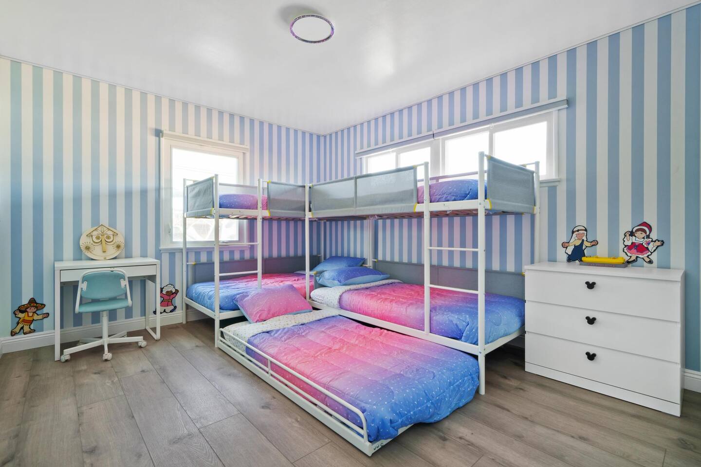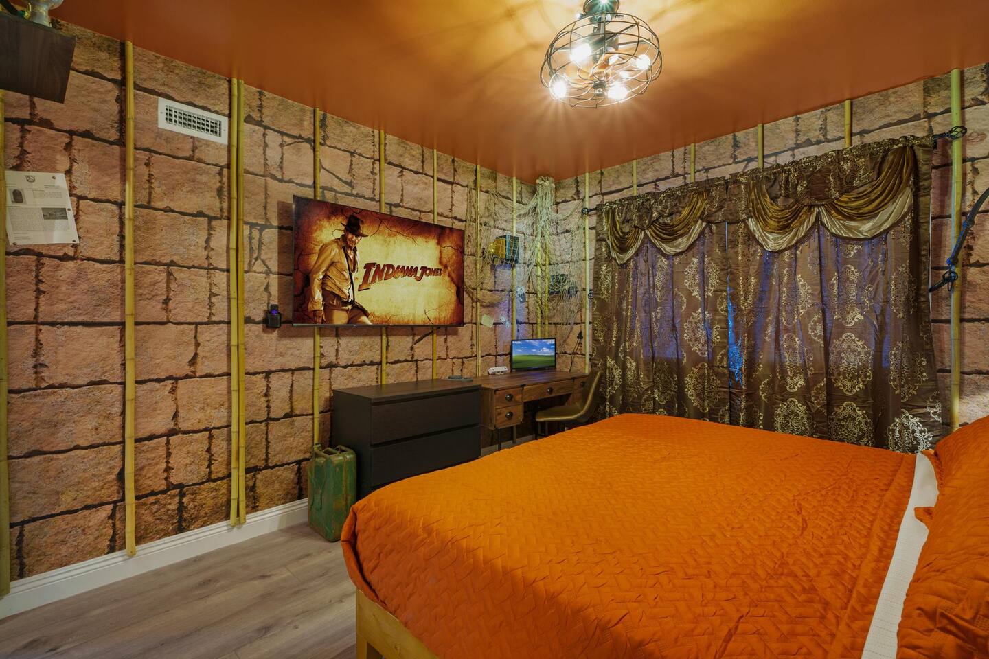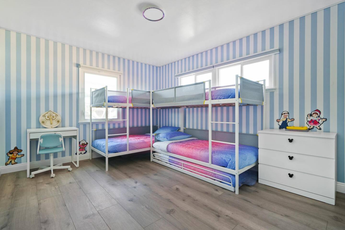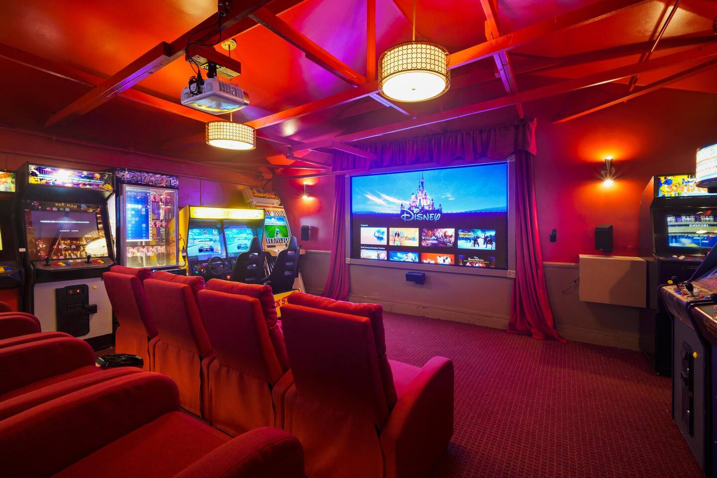 ๐ฐ Step into the Magic of Disneyland! ๐ Welcome to a world of wonder and enchantment! Inspired by the iconic theme park, this Disneyland-themed vacation rental transports you into your favorite stories. Every room is meticulously designed to capture the magic of Disney, making it the perfect place for die-hard fans and those seeking a fun-filled getaway to create lifelong memories. โจ Book your stay now and experience the magic of Disneyland like never before! ๐ฐ โ LIVING ROOM โ ๐๏ธ Cuddle up on the comfy sofas and create magical moments with your family in the themed living room. Marvel at the to-scale 3D model of Disneyland ๐ฐ and transport yourself into Main Street USA! Watch your favorite Disney movies or plan your next adventure in this cozy gathering spot. ๐๏ธ Comfy Sofa-Bed with Pillows ๐บ Smart TV with Netflix, Disney+, HBO, Hulu & 100+ channels ๐ฎ Xbox One Console with Games ๐ฒ Wide Selection of Board Games ๐๏ธ Access to the Magical Backyard โจ 3D Model of Disneyland โ KITCHEN & DINING โ ๐ฝ๏ธ Become the chef of your own magical kingdom in the fully equipped kitchen! With spacious countertops, state-of-the-art appliances, and plenty of cookware, preparing meals is a breeze. Serve up your creations at the dining table for 8, and donโt forget to indulge in the complimentary breakfast cereal and snacks to start your day off right! ๐ฅฃ ๐ณ Microwave, Stove, Oven, Refrigerator, Dishwasher โ Coffee Maker (with Complimentary Coffee & Tea) ๐ Hot Water Kettle, Toaster, Blender ๐ฝ๏ธ Full Set of Cookware, Trays, Glasses & Utensils ๐ด Eat up, Disney Fans! ๐ฝ๏ธ Dining Table with Seating for 8 ๐ฅฃ Complimentary Breakfast Cereal & Snacks โ SLEEPING ARRANGEMENTS โ 4 BEDROOMS โ ๐๏ธ Continue the magic of Disneyland into the evening! Choose from four themed bedrooms, each inspired by a classic Disney attraction! ๐ The master bedroom features a workspace, perfect for making those last-minute calls to Dr. Jones! ๐ผ Every room has its own effects and music to bring your favorite Disney moments to life! ๐ต ๐ Bedroom 1: (Indiana Jones) King-Size Bed, Workspace, Ensuite, 4K TV โฐ๏ธ Bedroom 2: (Thunder Mountain Railroad) King-Size Bed, 4K TV ๐ข Bedroom 3: (Steamboat Willie 2D) Queen-Size Bed, 4K TV ๐ Bedroom 4: (Itโs a Small World) 2 Bunk Beds (Twin/Twin) + Trundle, Desk, 4K TV ๐ค Premium Pillows, Linens & Sheets ๐บ Smart TVs with Netflix, Disney+, HBO, and more ๐ Closets, Dressers, & Reading Lamps ๐ต Themed Decor, Lighting Effects & Music โ BATHROOMS โ ๐ฟ Refresh and recharge in our two full bathrooms! The master ensuite offers privacy and luxury, while the second bathroom caters to other bedrooms and the living area. Each bathroom is fully stocked with fresh towels and toiletries, ensuring a stress-free stay. ๐ฟ Bathtub & Walk-In Shower ๐ช Vanity, Mirror, & Toilet ๐จ Hair Dryers & Essential Toiletries โ MAIN STREET CINEMA & ARCADE โ ๐ฌ๐ฎ Step into the Main Street Cinema for a private movie marathon or unleash your inner child in our free-play arcade! Choose from 10 arcade machines and enjoy a classic Disney film in the private theater for an unforgettable experience! ๐ฟ ๐ฅ HD Projector & Widescreen with Streaming Apps ๐๏ธ 2-Row Theater Seating ๐น๏ธ 10 Free-to-Play Arcade Machines โ BACKYARD โ ๐ ๐ฐ Experience the magic of Disneyland right in your own backyard! Imagine putting your skills to the test on the 4-hole mini-golf course โณ, hopping onto carousel kiddie rides ๐ , or grilling up a delicious meal on the BBQ while enjoying the outdoor dining area. ๐ฅ Professional playground equipment, lawn games, and themed playhouses offer endless hours of fun and enchantment! ๐ก Full-Size Playground with Swings & Slides โณ Mini-Golf Course ๐ Operating Carousel Horse Kiddie Rides ๐ฝ๏ธ Dining Table with Seating for 6 ๐ฅ BBQ Grill for Magical Feasts ๐ Ping Pong Table & Cornhole ๐ด Giant Connect 4 & Roller Coaster Racers โ HOUSE RULES โ ๐ ๐ซ No pets ๐ญ No smoking (inside or outside the home) ๐ Quiet Hours from 10 PM-8 AM Breaking these rules will result in cancellation and removal without refund. ๐ During quiet hours, outdoor facilities (Playground, Patio, etc.) are off-limits. Violations will result in fines and potential legal action. Large parties/events will be shut down immediately. ๐น Note: There are security cameras outside at the front and back of the house, recording at all times. This one-of-a-kind Disney-themed home offers the perfect blend of magic and comfort for an unforgettable family vacation! โจ Book your stay and step into a world of imagination and adventure! ๐