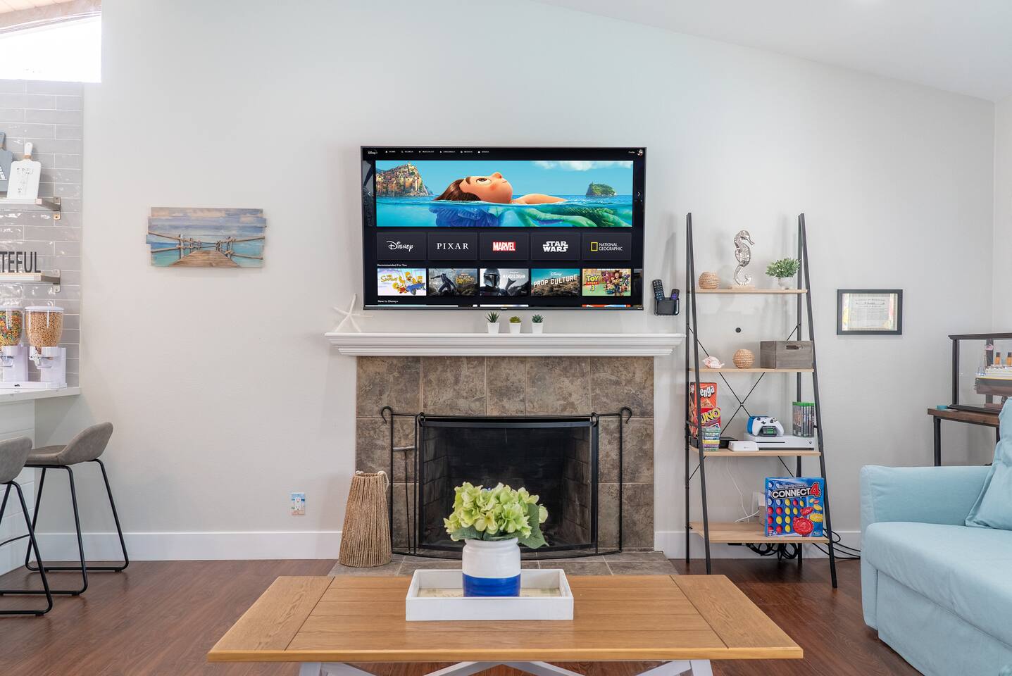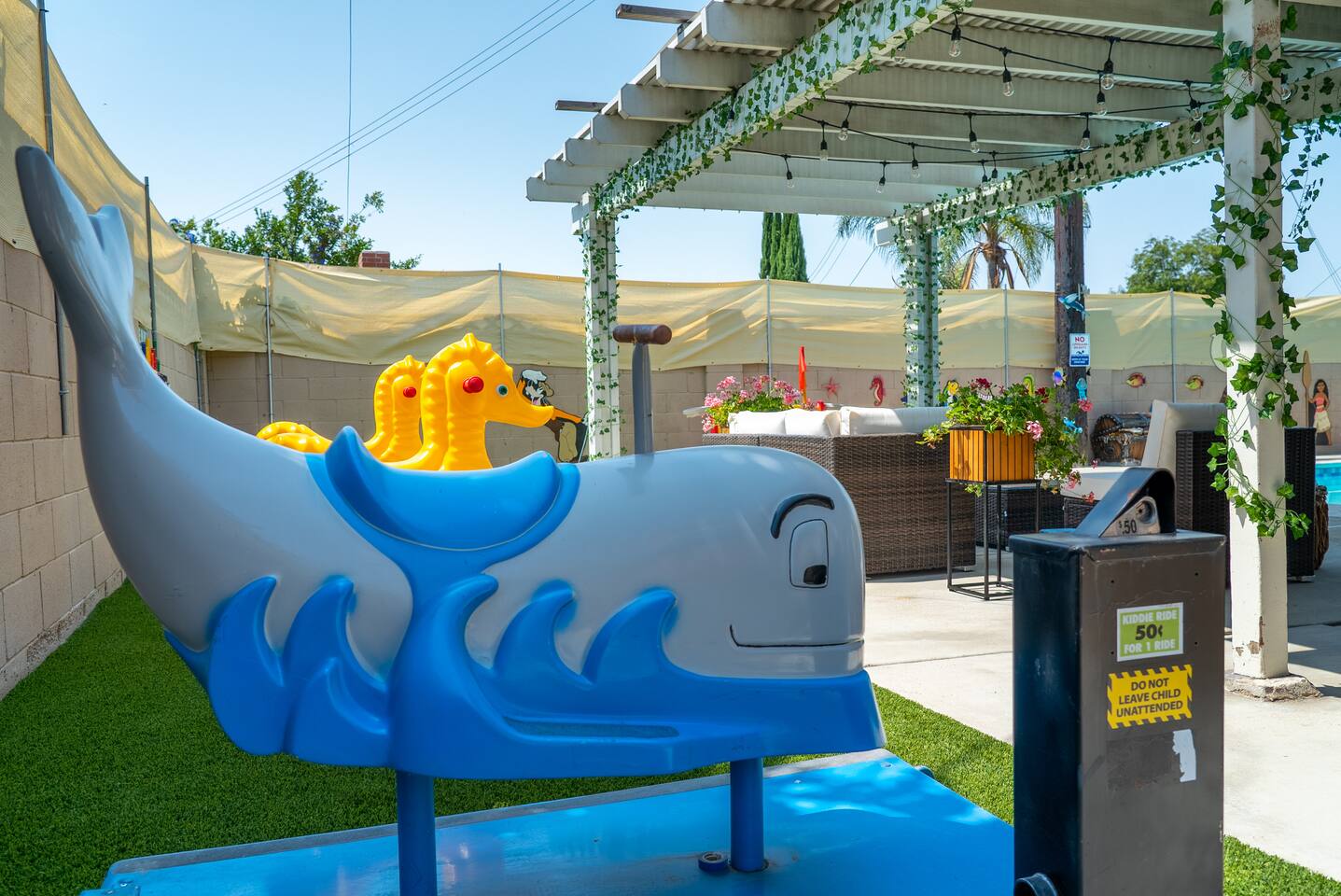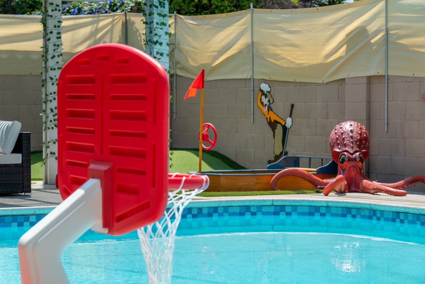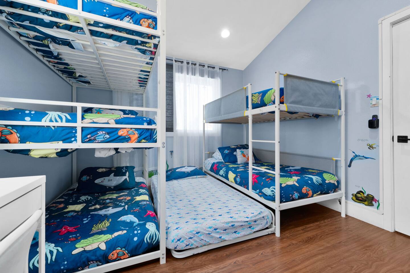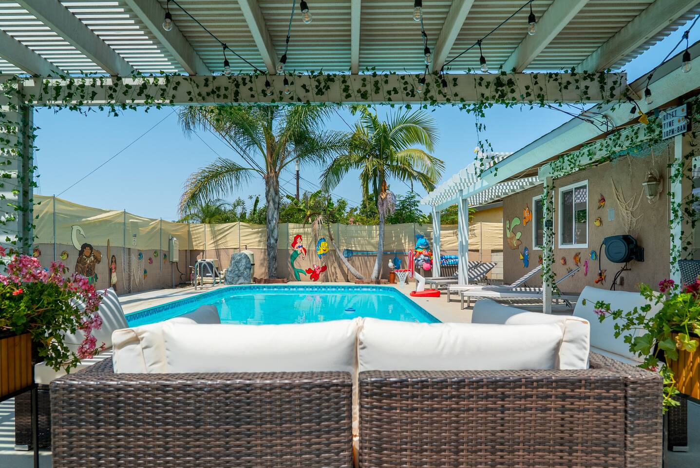 ๐ Welcome to the Ultimate Underwater Adventure! ๐ Step into a one-of-a-kind Disney-inspired ocean escape where the magic of The Little Mermaid, Moana, and Finding Nemo come to life! ๐ ๐ซ Just 7 minutes from Disneyland, this immersive 3BR, 2Bath retreat is perfect for families and ocean lovers alike. From sea-shelled details to glowing coral hues, every corner makes you feel like youโve dove into an underwater world of magic and fun. Whether youโre relaxing in the cozy living room, exploring the Underwater Arcade, or making a splash in the heated swimming pool, this home offers endless waves of entertainment. And for explorers young and old, a hidden treasure hunt awaitsโsolve clues and unlock the secrets of the sea! ๐๏ธโจ Dive in and discover a home where Disney magic meets undersea wonder! โ LIVING ROOM โ A COZY UNDERWATER LOUNGE โ ๐๏ธ๐ Gather in the ocean-inspired living room, where comfort and playfulness meet. Plush seating, aquatic decor, and streaming galore make this your familyโs favorite hangout. ๐๏ธ Comfortable Sofas & Pillows ๐บ Smart TV w/ Netflix, Disney+, HBO, Hulu & 100+ Channels ๐ฎ Xbox Console + Games ๐ฒ Family Board Games ๐ Nautical Decor Throughout Step through the glass doors to your private tropical backyard oasis! โ KITCHEN & DINING โ COOK LIKE A MASTER DIVER โ ๐ฝ๏ธโจ A fully equipped kitchen with everything you need to fuel your adventures! Prepare a snack fit for Sebastian or a feast for Moanaโs crew. ๐ณ Modern Appliances (Stove, Oven, Microwave, Fridge/Freezer) โ Complimentary Coffee & Tea ๐ฝ๏ธ Complete Cookware & Utensils ๐ Ocean-Inspired Accents ๐ฝ๏ธ Dining Table for 8 ๐ด Kitchen Island Seating for 4 ๐ก Donโt miss the complimentary snack basket & breakfast cereals! โ SLEEPING ARRANGEMENTS โ 3 OCEANIC BEDROOMS โ ๐๏ธ๐ After a day of Disney fun, retreat to your own ocean paradise. Each bedroom has been beautifully reimagined to capture the heart, color, and spirit of Disneyโs most beloved ocean stories: ๐งโโ๏ธ The Little Mermaid Room Drift into Arielโs world beneath the waves! This room shimmers with pearlescent hues, seashell accents, and coral details that make you feel like youโre part of her undersea kingdom. A beautiful mural sets the stage, and soft ocean lighting creates a calming glow as you drift to sleep dreaming of adventure under the sea. ๐ King-Size Bed ๐ Stylish Ocean Decor ๐บ 4K Smart TV ๐บ Moana Room Set sail beyond the reef! This room brings the warmth and spirit of the islands to life with lush Polynesian textures, woven accents, and glowing ocean tones. A stunning wall display features your favorite Moana characters in an interactive light and sound show set to the song โLet It Go,โ transforming the room into a magical, immersive experience each night. ๐โจ ๐ King-Size Bed โ Island Vibes and Decor ๐บ 4K Smart TV ๐ Finding Nemo Room Perfect for kids and families, this playful room transports guests straight into the Great Barrier Reef! Swim among coral murals, colorful fish, and bubbles that seem to dance across the walls. Bright lighting and cozy bunks make it the perfect underwater hideout for young explorers ready for bedtime adventures. ๐๏ธ Two Bunk Beds (Twin over Twin over Twin) + Trundle Bed ๐จ Fun, vibrant decor perfect for kids ๐บ 4K Smart TV ๐ค Premium Pillows, Linens & Sheets in Every Room ๐บ Smart TVs with streaming options in every bedroom โ BATHROOMS โ FRESHEN UP IN STYLE โ ๐ฟโจ The house offers two full bathrooms, each designed for comfort and convenience. With fresh towels, plush rugs, and a full set of essential toiletries, youโll feel completely refreshed and ready to tackle your next adventure. ๐ Bathtub with Shower for a soothing soak ๐ฟ Walk-In Shower in the master bath โ Nautical-Themed Decor ๐โโ๏ธ Hair Dryers, Shampoo, Conditioner & Body Wash โ UNDERWATER ARCADE โ A DEEP SEA ADVENTURE โ ๐ฎ๐ Dive into the immersive underwater arcade, where over 20 classic and modern arcade machines are set to free play! With vibrant sea-themed murals and special lighting to make you feel like youโre exploring the ocean depths, this space is perfect for both kids and adults to let loose and have a blast. ๐ฎ 20+ Free-to-Play Arcade Machines ๐ Themed Underwater Lighting & Murals ๐ An Experience You Wonโt Find Anywhere Else โ SCAVENGER HUNT โ SEEK THE HIDDEN TREASURE โ ๐บ๏ธ๐๏ธโจ No underwater adventure is complete without a treasure hunt! Follow the clues hidden throughout the home, solve puzzles, and uncover hidden treasures in this interactive scavenger huntโperfect for kids and family fun! โ BACKYARD โ A PRIVATE OASIS โ ๐ด๐ Soak up the California sun in a backyard designed for both relaxation and excitement. Whether youโre splashing in the heated swimming pool, showing off your skills on the mini-golf course, or enjoying a BBQ under the palms, thereโs something here for everyone. And kids will adore the Free Whale Kiddie Ride ๐ณโa magical, gentle motion ride that makes them feel like theyโre gliding through the sea with their favorite ocean friends! ๐ Heated Swimming Pool โณ Mini-Golf Course ๐ช Comfy Lounge Seating & Sun Lounges ๐ฅ BBQ Grill for outdoor feasts ๐ฝ๏ธ Outdoor Dining Area with seating for 6 ๐ณ Free Whale Kiddie Ride This Disney-inspired underwater escape is more than just a homeโitโs a destination where magic and adventure await! Perfect for families, friends, and fans of all things Disney, itโs designed to make your stay a memorable experience from start to finish. ๐โจ ๐ ๐ซ Book your stay now and make a splash in this unforgettable underwater oasis!