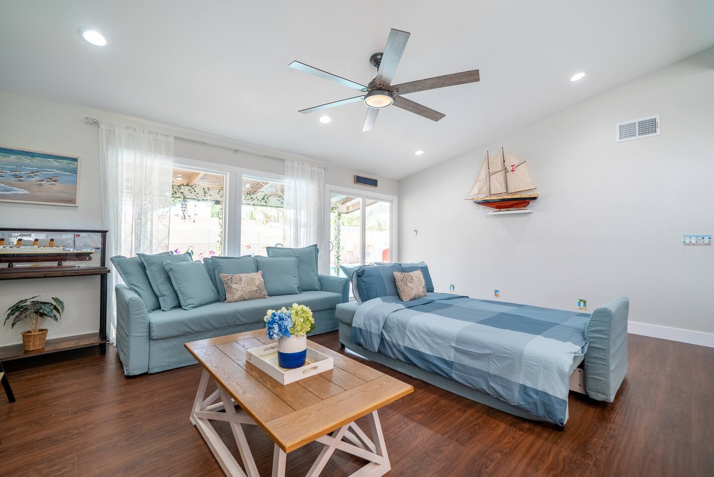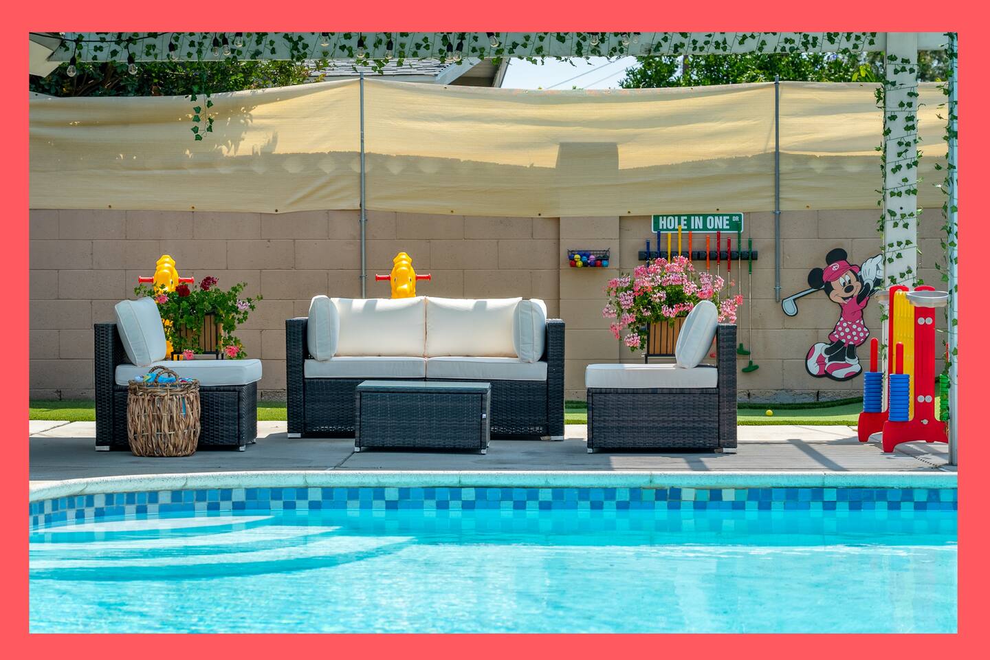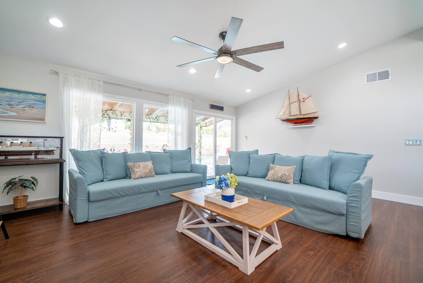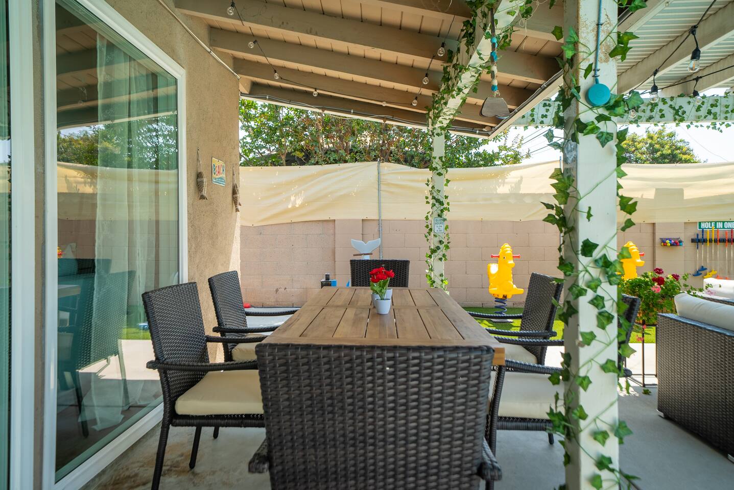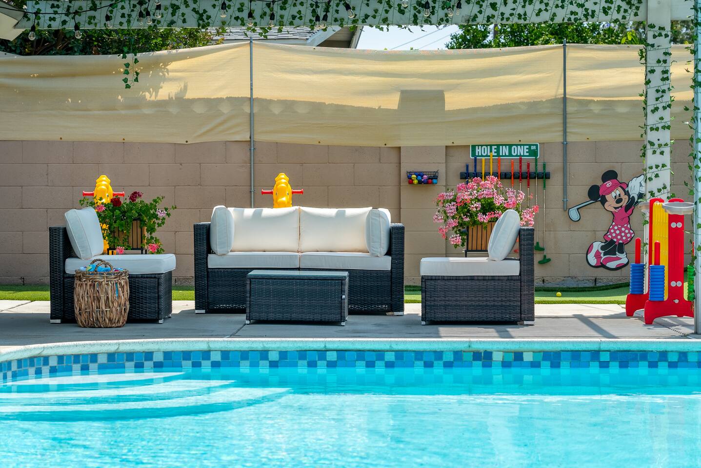 ๐ Welcome to the Ultimate Underwater Adventure! ๐ Step into a one-of-a-kind Disney-inspired ocean escape where the magic of The Little Mermaid, Moana, and Finding Nemo come to life! ๐ ๐ซ Just 7 minutes from Disneyland, this immersive 3BR, 2Bath retreat is perfect for families and ocean lovers alike. From sea-shelled details to glowing coral hues, every corner makes you feel like youโve dove into an underwater world of magic and fun. Whether youโre relaxing in the cozy living room, exploring the Underwater Arcade, or making a splash in the heated swimming pool, this home offers endless waves of entertainment. And for explorers young and old, a hidden treasure hunt awaitsโsolve clues and unlock the secrets of the sea! ๐๏ธโจ Dive in and discover a home where Disney magic meets undersea wonder! โ LIVING ROOM โ A COZY UNDERWATER LOUNGE โ ๐๏ธ๐ Gather in the ocean-inspired living room, where comfort and playfulness meet. Plush seating, aquatic decor, and streaming galore make this your familyโs favorite hangout. ๐๏ธ Comfortable Sofas & Pillows ๐บ Smart TV w/ Netflix, Disney+, HBO, Hulu & 100+ Channels ๐ฎ Xbox Console + Games ๐ฒ Family Board Games ๐ Nautical Decor Throughout Step through the glass doors to your private tropical backyard oasis! โ KITCHEN & DINING โ COOK LIKE A MASTER DIVER โ ๐ฝ๏ธโจ A fully equipped kitchen with everything you need to fuel your adventures! Prepare a snack fit for Sebastian or a feast for Moanaโs crew. ๐ณ Modern Appliances (Stove, Oven, Microwave, Fridge/Freezer) โ Complimentary Coffee & Tea ๐ฝ๏ธ Complete Cookware & Utensils ๐ Ocean-Inspired Accents ๐ฝ๏ธ Dining Table for 8 ๐ด Kitchen Island Seating for 4 ๐ก Donโt miss the complimentary snack basket & breakfast cereals! โ SLEEPING ARRANGEMENTS โ 3 OCEANIC BEDROOMS โ ๐๏ธ๐ After a day of Disney fun, retreat to your own ocean paradise. Each bedroom has been beautifully reimagined to capture the heart, color, and spirit of Disneyโs most beloved ocean stories: ๐งโโ๏ธ The Little Mermaid Room Drift into Arielโs world beneath the waves! This room shimmers with pearlescent hues, seashell accents, and coral details that make you feel like youโre part of her undersea kingdom. A beautiful mural sets the stage, and soft ocean lighting creates a calming glow as you drift to sleep dreaming of adventure under the sea. ๐ King-Size Bed ๐ Stylish Ocean Decor ๐บ 4K Smart TV ๐บ Moana Room Set sail beyond the reef! This room brings the warmth and spirit of the islands to life with lush Polynesian textures, woven accents, and glowing ocean tones. A stunning wall display features your favorite Moana characters in an interactive light and sound show set to the song โLet It Go,โ transforming the room into a magical, immersive experience each night. ๐โจ ๐ King-Size Bed โ Island Vibes and Decor ๐บ 4K Smart TV ๐ Finding Nemo Room Perfect for kids and families, this playful room transports guests straight into the Great Barrier Reef! Swim among coral murals, colorful fish, and bubbles that seem to dance across the walls. Bright lighting and cozy bunks make it the perfect underwater hideout for young explorers ready for bedtime adventures. ๐๏ธ Two Bunk Beds (Twin over Twin over Twin) + Trundle Bed ๐จ Fun, vibrant decor perfect for kids ๐บ 4K Smart TV ๐ค Premium Pillows, Linens & Sheets in Every Room ๐บ Smart TVs with streaming options in every bedroom โ BATHROOMS โ FRESHEN UP IN STYLE โ ๐ฟโจ The house offers two full bathrooms, each designed for comfort and convenience. With fresh towels, plush rugs, and a full set of essential toiletries, youโll feel completely refreshed and ready to tackle your next adventure. ๐ Bathtub with Shower for a soothing soak ๐ฟ Walk-In Shower in the master bath โ Nautical-Themed Decor ๐โโ๏ธ Hair Dryers, Shampoo, Conditioner & Body Wash โ UNDERWATER ARCADE โ A DEEP SEA ADVENTURE โ ๐ฎ๐ Dive into the immersive underwater arcade, where over 20 classic and modern arcade machines are set to free play! With vibrant sea-themed murals and special lighting to make you feel like youโre exploring the ocean depths, this space is perfect for both kids and adults to let loose and have a blast. ๐ฎ 20+ Free-to-Play Arcade Machines ๐ Themed Underwater Lighting & Murals ๐ An Experience You Wonโt Find Anywhere Else โ SCAVENGER HUNT โ SEEK THE HIDDEN TREASURE โ ๐บ๏ธ๐๏ธโจ No underwater adventure is complete without a treasure hunt! Follow the clues hidden throughout the home, solve puzzles, and uncover hidden treasures in this interactive scavenger huntโperfect for kids and family fun! โ BACKYARD โ A PRIVATE OASIS โ ๐ด๐ Soak up the California sun in a backyard designed for both relaxation and excitement. Whether youโre splashing in the heated swimming pool, showing off your skills on the mini-golf course, or enjoying a BBQ under the palms, thereโs something here for everyone. And kids will adore the Free Whale Kiddie Ride ๐ณโa magical, gentle motion ride that makes them feel like theyโre gliding through the sea with their favorite ocean friends! ๐ Heated Swimming Pool โณ Mini-Golf Course ๐ช Comfy Lounge Seating & Sun Lounges ๐ฅ BBQ Grill for outdoor feasts ๐ฝ๏ธ Outdoor Dining Area with seating for 6 ๐ณ Free Whale Kiddie Ride This Disney-inspired underwater escape is more than just a homeโitโs a destination where magic and adventure await! Perfect for families, friends, and fans of all things Disney, itโs designed to make your stay a memorable experience from start to finish. ๐โจ ๐ ๐ซ Book your stay now and make a splash in this unforgettable underwater oasis!
