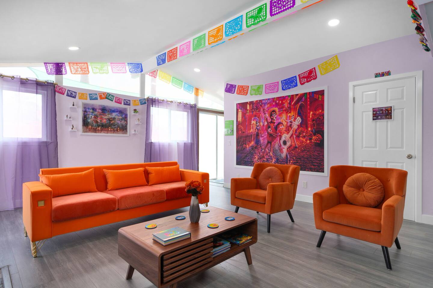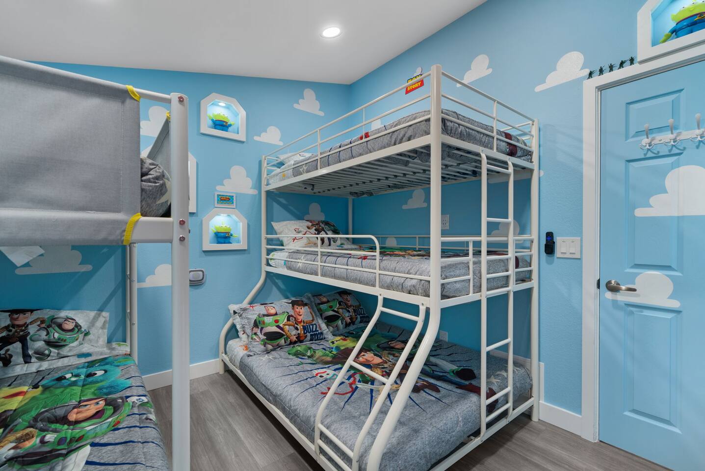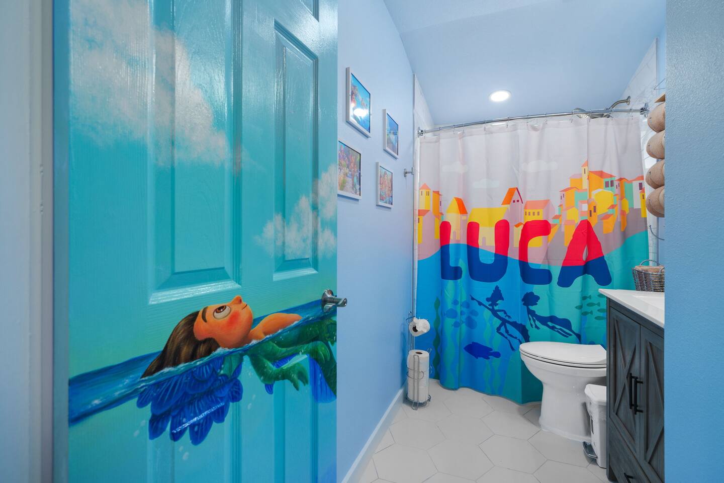 🎡 Welcome to Pixar Pier! 🎬✨ Step into the ultimate Pixar dream home—a one-of-a-kind vacation retreat where your favorite animated movies come to life in every room! This spacious 4-bedroom, 2-bath family-friendly escape is filled with iconic decor and characters from beloved Pixar films, designed to bring joy, comfort, and adventure to guests of all ages. Whether you’re cooking up magic in the Ratatouille kitchen, diving into the Finding Nemo heated pool, or watching movies in Wall-E’s Theater under the stars, every corner of Pixar Pier is crafted to create unforgettable memories. 🎈🏠✨ Gather in the Coco-themed living room to relax, play games, and share stories of your Disney adventures. Enjoy a delicious meal in the Ratatouille kitchen, where the chef’s touch and a sprinkle of Pixar magic make every dish a delight. Then, settle down in one of four beautifully designed bedrooms—each offering a unique Pixar experience—before venturing into the space-themed movie theater for a night of animated classics and friendly competition in the arcade! 🌟 Ready to explore outdoors? Splash around in the Finding Nemo heated pool, practice your swing at the mini-golf course, or head over to the Incredibles Playground for endless fun! 🏊♂️⛳💦 ★ LIVING ROOM – GATHER IN COCO’S PLAZA ★ 🎸✨ Step into the Coco-themed living room, where you’ll be surrounded by vibrant colors and reminders of family, music, and love. 🛋️ Play a game, watch your favorite Pixar movie, or simply relax in this welcoming space with a bit of fiesta flair. 🎶 ✔️ Comfy Sofas with plush pillows 📺 Smart TV with Netflix, Disney+, HBO, Hulu & 100+ Channels 🎮 Xbox One Console with Game Pass 🎲 Board Games for family fun ✨ Pixar-Inspired Art & Decor ★ RATATOUILLE KITCHEN – COOK LIKE A CHEF ★ 🍽️✨ Experience the magic of Remy’s Parisian kitchen, where you’ll have everything you need to whip up a delicious feast for your crew! With state-of-the-art appliances and plenty of room for everyone to help, it’s the perfect spot to make dining a family adventure. 🍲 ✔️ Microwave, Stove, Oven, Refrigerator/Freezer ✔️ Coffee Maker, Toaster, Blender & Popcorn Popper ✔️ Full Set of Cookware, Utensils & Dishware ✔️ Complimentary Coffee, Tea & Snacks 🍽️ Dining Table with seating for 6 🍴 Breakfast Bar with seating for 4 ★ SLEEPING ARRANGEMENTS – 4 THEMED BEDROOMS ★ 🛏️✨ Each of the four bedrooms transports you into the whimsical world of Pixar! Whether you’re floating away in Carl’s house from Up, sneaking around Monstropolis, or dreaming in Andy’s Room, these rooms are designed to make bedtime part of the adventure! 💤💫 🛏️ “Up” Master Suite ✔️ King-Size Bed ✔️ Ensuite Bathroom ✔️ Workstation—perfect for catching up on calls from Paradise Falls! ✔️ 4K TV for evening movie marathons 👾 “Monsters, Inc.” Guest Room ✔️ King-Size Bed ✔️ 4K TV ✔️ A guaranteed 100% monster-free space! 🚗 “Cars” Guest Room ✔️ Queen-Size Bed ✔️ Pixar Cars-inspired artwork ✔️ 4K TV 🚀 “Toy Story” Bunk Room ✔️ Double Bunk Bed (Twin over Twin) + Trundle ✔️ Triple Bunk Bed (Twin over Twin over Full) ✔️ 4K TV & Desk for creative projects 💤 Plush Pillows, Premium Linens & Sheets 📺 Smart TVs in Every Room ★ BATHROOMS – FRESHEN UP WITH NEMO ★ 🚿✨ Experience the ocean magic of Finding Nemo in our two beautifully designed bathrooms! From the playful touches in the full guest bath to the calming blues of the ensuite master bath, every detail has been carefully curated to make your mornings and evenings feel extra special. 💦🐠 ✔️ Bathtub with Shower & Walk-In Shower Options ✔️ Fresh Towels & Hair Dryers ✔️ Complimentary Toiletries ★ WALL-E’S OUTER SPACE THEATER & ARCADE ★ 🎬🕹️✨ Blast off into space in Wall-E’s private movie theater! The room is designed to make you feel like you’re truly among the stars, thanks to a starry ceiling that twinkles like the galaxy. 🌌✨ With power reclining seats and an HD projector, it’s the perfect spot to watch animated classics. When you’re ready to play, challenge each other in the free-play arcade for a fun-filled competition! 🚀 ✔️ HD Projector & Widescreen with Netflix, Disney+, HBO & more ✔️ Power Reclining Theater Seating 🕹️ Free-to-Play Arcade Machines 🌟 Starry Ceiling that brings the magic of the cosmos to life ★ FINDING NEMO POOL & INCREDIBLES PLAYGROUND ★ 🌊💦 The backyard is filled with fun activities for the whole family! 🏝️ Cool off in the Finding Nemo heated pool, test your putting skills at the mini-golf course, or take on the Incredibles Playground, complete with water tables, teeter-totters, and more for endless outdoor fun! 🌞⛳ ✔️ Heated Swimming Pool with Safety Fencing ✔️ Mini-Golf Course for family fun 🎠 Playground & Water Tables 🔥 BBQ Grill for family cookouts 🍽️ Patio Seating for 6 Create magical memories at Pixar Pier, where the enchantment of Pixar surrounds you at every turn. Book your stay now, and get ready to experience the adventure, laughter, and joy of your favorite animated films in a home designed for Pixar fans of all ages! 🎡✨