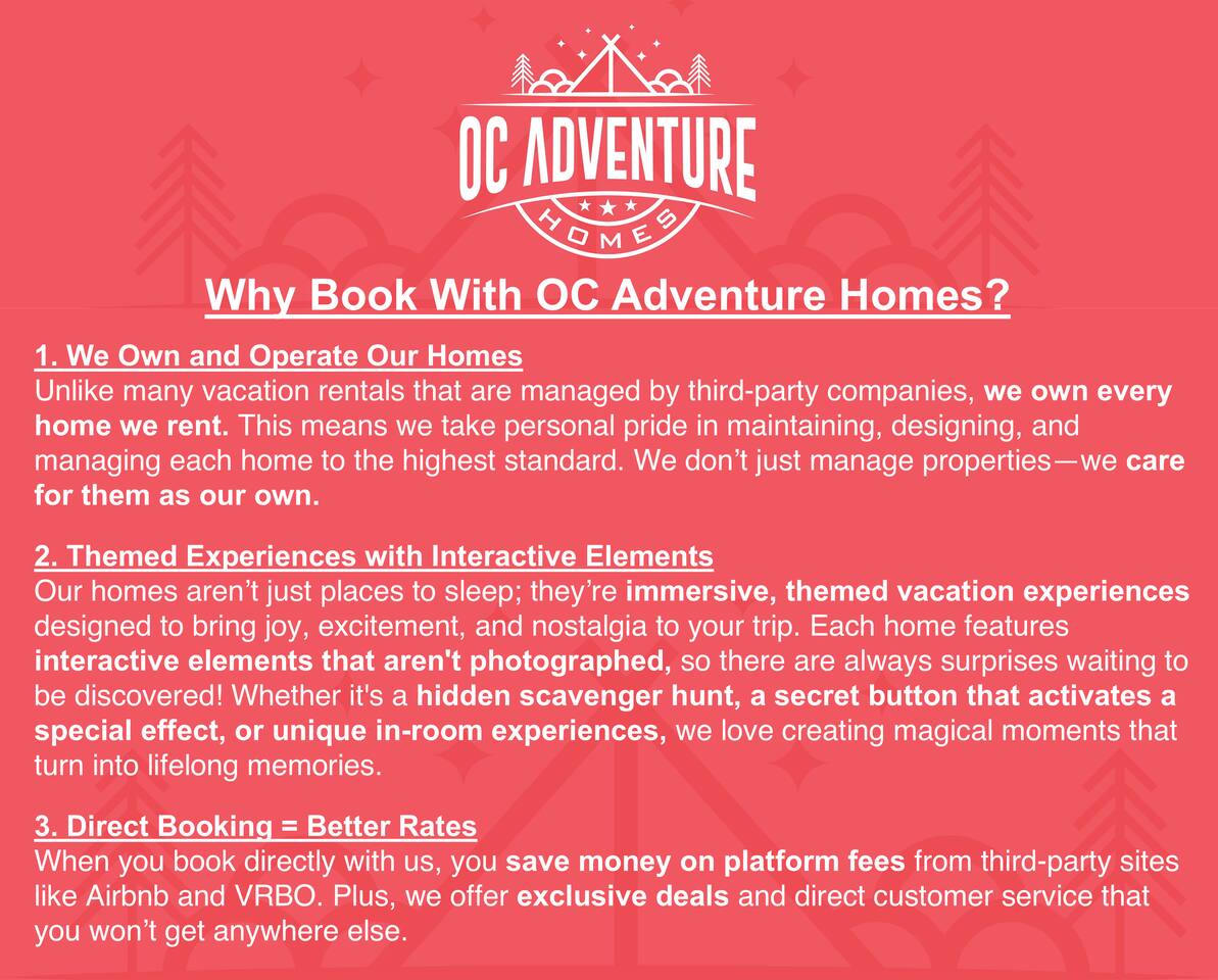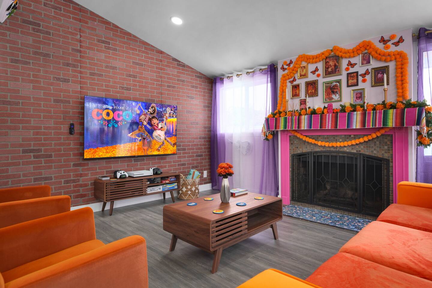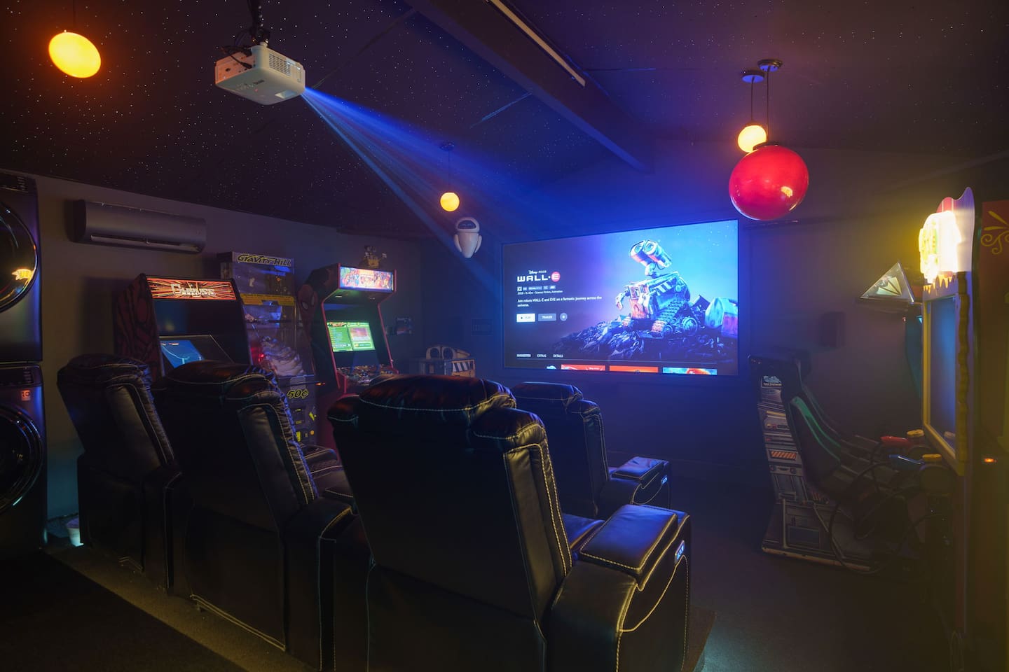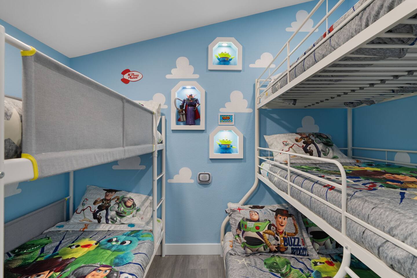 🎡 Welcome to Pixar Pier! 🎬✨ Step into the ultimate Pixar dream home—a one-of-a-kind vacation retreat where your favorite animated movies come to life in every room! This spacious 4-bedroom, 2-bath family-friendly escape is filled with iconic decor and characters from beloved Pixar films, designed to bring joy, comfort, and adventure to guests of all ages. Whether you’re cooking up magic in the Ratatouille kitchen, diving into the Finding Nemo heated pool, or watching movies in Wall-E’s Theater under the stars, every corner of Pixar Pier is crafted to create unforgettable memories. 🎈🏠✨ Gather in the Coco-themed living room to relax, play games, and share stories of your Disney adventures. Enjoy a delicious meal in the Ratatouille kitchen, where the chef’s touch and a sprinkle of Pixar magic make every dish a delight. Then, settle down in one of four beautifully designed bedrooms—each offering a unique Pixar experience—before venturing into the space-themed movie theater for a night of animated classics and friendly competition in the arcade! 🌟 Ready to explore outdoors? Splash around in the Finding Nemo heated pool, practice your swing at the mini-golf course, or head over to the Incredibles Playground for endless fun! 🏊♂️⛳💦 ★ LIVING ROOM – GATHER IN COCO’S PLAZA ★ 🎸✨ Step into the Coco-themed living room, where you’ll be surrounded by vibrant colors and reminders of family, music, and love. 🛋️ Play a game, watch your favorite Pixar movie, or simply relax in this welcoming space with a bit of fiesta flair. 🎶 ✔️ Comfy Sofas with plush pillows 📺 Smart TV with Netflix, Disney+, HBO, Hulu & 100+ Channels 🎮 Xbox One Console with Game Pass 🎲 Board Games for family fun ✨ Pixar-Inspired Art & Decor ★ RATATOUILLE KITCHEN – COOK LIKE A CHEF ★ 🍽️✨ Experience the magic of Remy’s Parisian kitchen, where you’ll have everything you need to whip up a delicious feast for your crew! With state-of-the-art appliances and plenty of room for everyone to help, it’s the perfect spot to make dining a family adventure. 🍲 ✔️ Microwave, Stove, Oven, Refrigerator/Freezer ✔️ Coffee Maker, Toaster, Blender & Popcorn Popper ✔️ Full Set of Cookware, Utensils & Dishware ✔️ Complimentary Coffee, Tea & Snacks 🍽️ Dining Table with seating for 6 🍴 Breakfast Bar with seating for 4 ★ SLEEPING ARRANGEMENTS – 4 THEMED BEDROOMS ★ 🛏️✨ Each of the four bedrooms transports you into the whimsical world of Pixar! Whether you’re floating away in Carl’s house from Up, sneaking around Monstropolis, or dreaming in Andy’s Room, these rooms are designed to make bedtime part of the adventure! 💤💫 🛏️ “Up” Master Suite ✔️ King-Size Bed ✔️ Ensuite Bathroom ✔️ Workstation—perfect for catching up on calls from Paradise Falls! ✔️ 4K TV for evening movie marathons 👾 “Monsters, Inc.” Guest Room ✔️ King-Size Bed ✔️ 4K TV ✔️ A guaranteed 100% monster-free space! 🚗 “Cars” Guest Room ✔️ Queen-Size Bed ✔️ Pixar Cars-inspired artwork ✔️ 4K TV 🚀 “Toy Story” Bunk Room ✔️ Double Bunk Bed (Twin over Twin) + Trundle ✔️ Triple Bunk Bed (Twin over Twin over Full) ✔️ 4K TV & Desk for creative projects 💤 Plush Pillows, Premium Linens & Sheets 📺 Smart TVs in Every Room ★ BATHROOMS – FRESHEN UP WITH NEMO ★ 🚿✨ Experience the ocean magic of Finding Nemo in our two beautifully designed bathrooms! From the playful touches in the full guest bath to the calming blues of the ensuite master bath, every detail has been carefully curated to make your mornings and evenings feel extra special. 💦🐠 ✔️ Bathtub with Shower & Walk-In Shower Options ✔️ Fresh Towels & Hair Dryers ✔️ Complimentary Toiletries ★ WALL-E’S OUTER SPACE THEATER & ARCADE ★ 🎬🕹️✨ Blast off into space in Wall-E’s private movie theater! The room is designed to make you feel like you’re truly among the stars, thanks to a starry ceiling that twinkles like the galaxy. 🌌✨ With power reclining seats and an HD projector, it’s the perfect spot to watch animated classics. When you’re ready to play, challenge each other in the free-play arcade for a fun-filled competition! 🚀 ✔️ HD Projector & Widescreen with Netflix, Disney+, HBO & more ✔️ Power Reclining Theater Seating 🕹️ Free-to-Play Arcade Machines 🌟 Starry Ceiling that brings the magic of the cosmos to life ★ FINDING NEMO POOL & INCREDIBLES PLAYGROUND ★ 🌊💦 The backyard is filled with fun activities for the whole family! 🏝️ Cool off in the Finding Nemo heated pool, test your putting skills at the mini-golf course, or take on the Incredibles Playground, complete with water tables, teeter-totters, and more for endless outdoor fun! 🌞⛳ ✔️ Heated Swimming Pool with Safety Fencing ✔️ Mini-Golf Course for family fun 🎠 Playground & Water Tables 🔥 BBQ Grill for family cookouts 🍽️ Patio Seating for 6 Create magical memories at Pixar Pier, where the enchantment of Pixar surrounds you at every turn. Book your stay now, and get ready to experience the adventure, laughter, and joy of your favorite animated films in a home designed for Pixar fans of all ages! 🎡✨