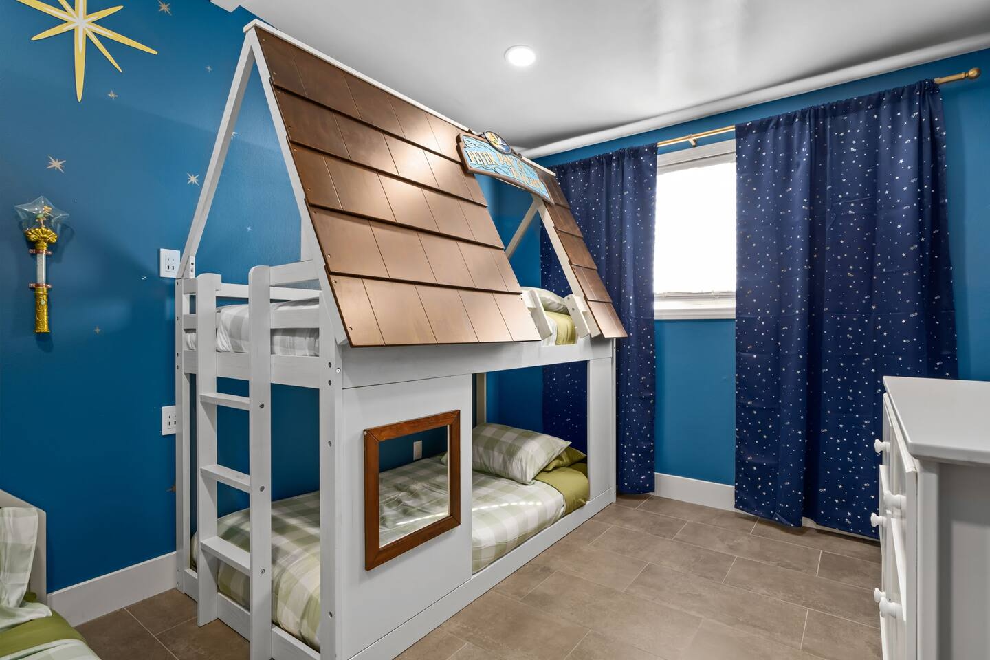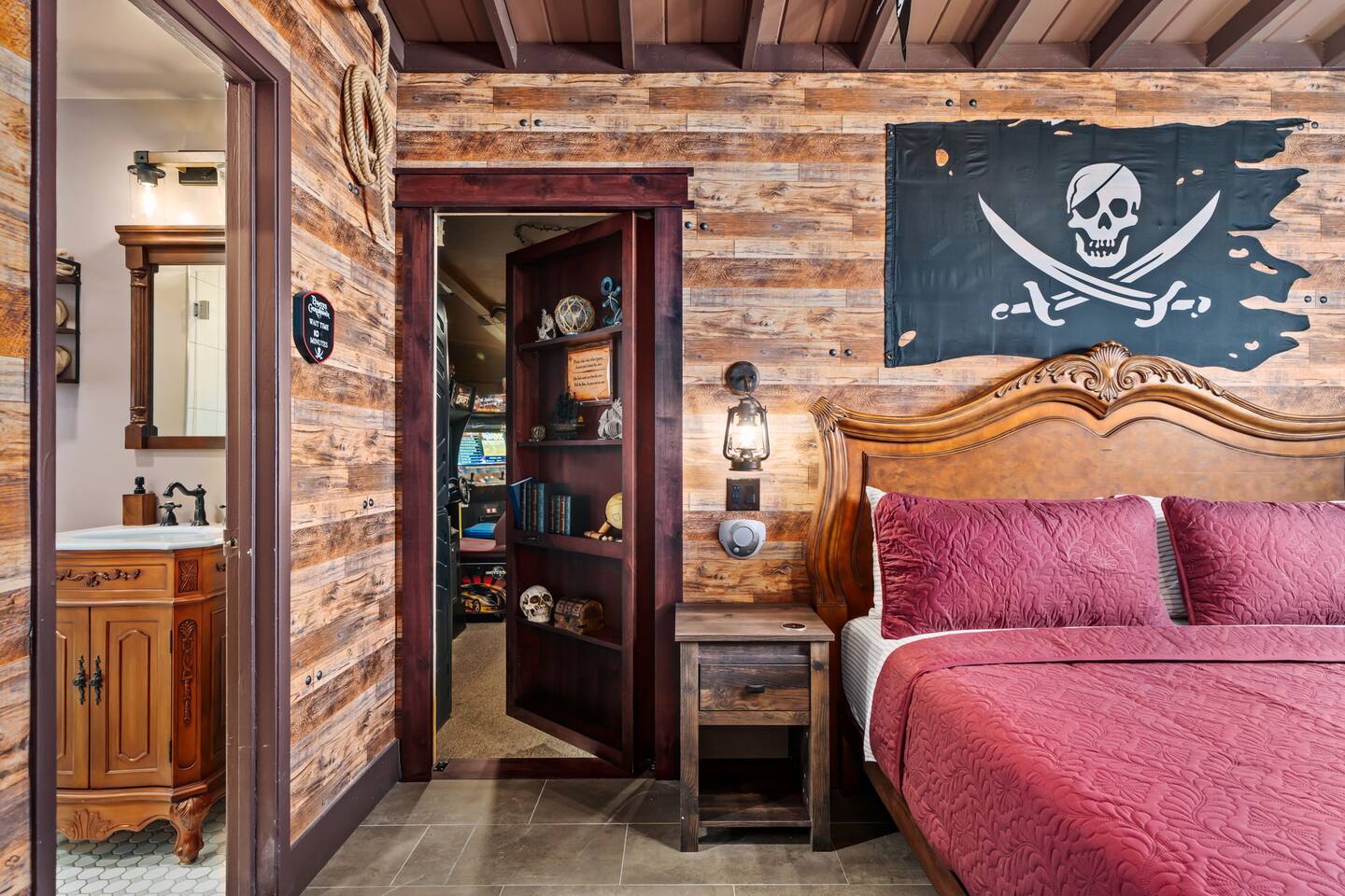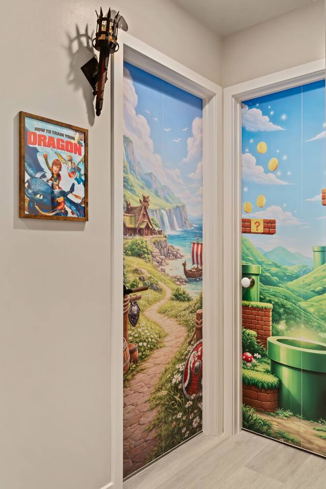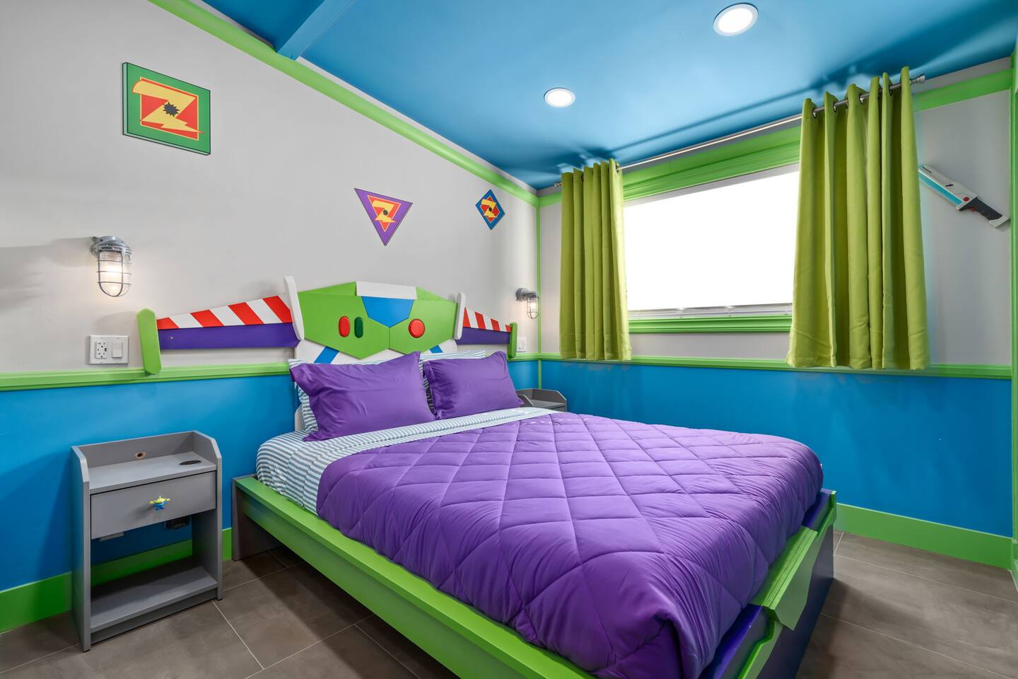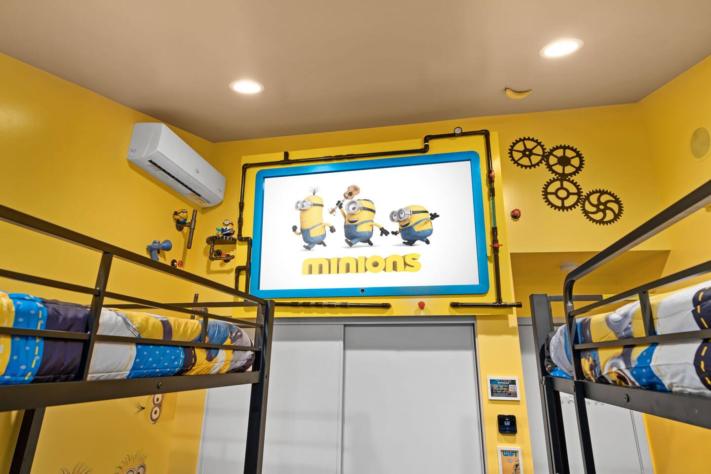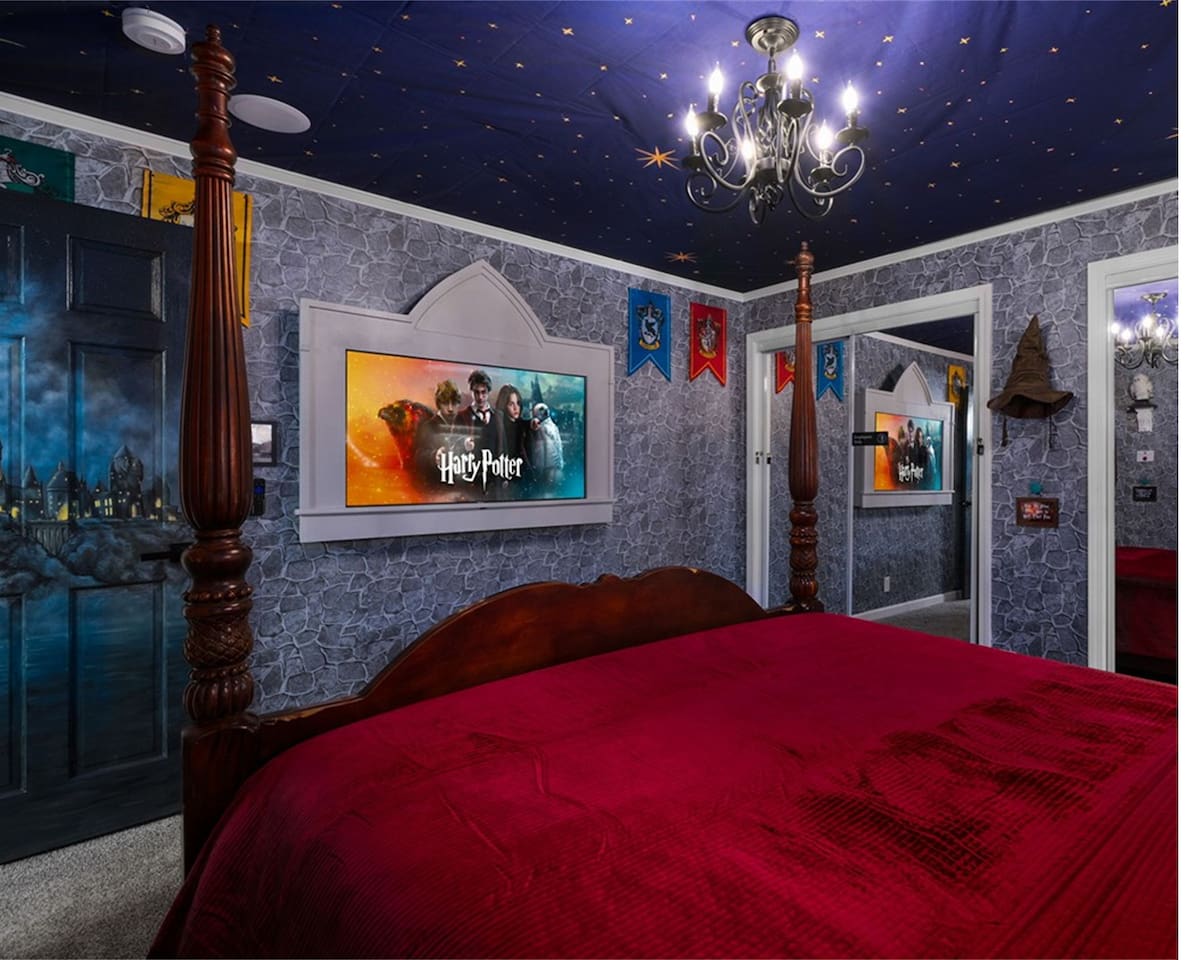 🎬✨ Welcome to the Ultimate Theme-Park Compound ✨🎬 Brought to you by OC Adventure Homes This one-of-a-kind retreat features two fully themed homes on one lot, designed to feel like your own private theme park. The front home brings classic Disney-inspired magic, while the second home delivers Universal-inspired adventure—all connected by a shared outdoor playland built for nonstop fun. Perfect for large families, multi-family trips, and group getaways, this is more than a place to stay—it’s an experience kids (and adults) will be talking about long after checkout. ⚠️ Please note: the maximum occupancy is 18 guests total, including all adults and children. 🏰 MAIN HOME – DISNEY-INSPIRED MAGIC Every room in the main house tells a story, blending nostalgia, imagination, and hidden surprises. 🦜 Pirates of the Caribbean Master Suite Step into a candle-lit pirate hideaway where adventure lurks behind every detail. Weathered textures, nautical accents, and dramatic lighting set the mood for a high-seas escape. ✔️ King Bed ✔️ Smart TV ✔️ Private ensuite bathroom ✔️ Secret bookcase entrance leading directly into the movie theater ✨ Peter Pan Kids’ Room A whimsical Neverland adventure where kids can fly off to dreamland. Designed for play, laughter, and late-night storytelling. ✔️ One Triple Bunk + One Double Bunk ✔️ 5 Total Beds ✔️ Smart TV ✔️ Bright, imaginative décor perfect for younger guests 🚀 Buzz Lightyear Space Bedroom Blast off into a sleek, space-inspired retreat filled with cosmic energy and futuristic touches. ✔️ Queen Bed ✔️ Smart TV ✔️ Clean, bold sci-fi theming 🏘️ Mickey’s Toontown Bedroom A playful, colorful space inspired by classic cartoon charm—bright, cheerful, and full of personality. ✔️ King Bed ✔️ Smart TV ✔️ Fun, animated design details 🎬 Indiana Jones Movie Theater & Free-Play Arcade Adventure takes center stage in this action-packed entertainment zone. 🗺️ Temple-inspired décor 🎥 Large-screen movie theater 🕹️ Free-to-play arcade machines 🍿 The perfect space for movie nights, rainy days, and epic family competitions ♠️ Alice in Wonderland Living Room & Kitchen Nothing is quite what it seems in this imaginative gathering space. This whimsical living room and kitchen combo is the heart of the home, designed for gathering, relaxing, and making memories together. 🛋️ Seating for 8 📺 Smart TV 🎮 Xbox One with free Xbox Game Pass Unlimited 🍽️ Kitchen stocked with cooking essentials 🥣 Cereal and snacks available for guests 🎲 Board games and family hangout vibes 🚿 Themed Bathrooms 🕯️ Haunted Mansion Bathroom – moody, mysterious, and atmospheric 🦜 Pirates of the Caribbean Bathroom – the private ensuite attached to the master suite, continuing the immersive pirate theming 🎥 SECOND HOME – UNIVERSAL-INSPIRED ADVENTURE Tucked behind the main house, the second home delivers blockbuster excitement with its own immersive worlds. ⚡ Harry Potter Master Suite A magical retreat filled with spellbinding details—perfect for witches, wizards, and fans of fantasy. ✔️ King Bed ✔️ Smart TV ✔️ Private Ensuite Bathroom 🍄 Super Mario Bedroom Bright, bold, and playful—this room feels like stepping into a video game world. ✔️ King Bed ✔️ Smart TV ✔️ Colorful, game-inspired design 🎭 Minions Kids’ Room A high-energy space bursting with fun, mischief, and laughter. ✔️ Two Triple Bunk Beds ✔️ 6 Total Twin Beds ✔️ Smart TV ✔️ Designed for kids to play hard, laugh loud, and sleep well 🦖 Jurassic Park Living Room & Kitchen A cinematic jungle escape with adventurous flair—perfect for relaxing between expeditions. This themed living room and kitchen combo has everything you need for a cozy stay in the second home. 🛋️ Comfortable seating 📺 Smart TV 🦕 Immersive dinosaur-inspired décor 🍽️ Dining for 4 🍳 Cooking essentials provided 🥣 Cereal and snacks available for guests 🚿 How to Train Your Dragon Bathroom Fantasy-inspired details bring this imaginative world to life in unexpected ways. 🌴 SHARED OUTDOOR PLAYLAND Both homes open to a shared backyard designed for kids to run, play, and explore while adults relax nearby. ⛳ Mini-golf 🎠 Kiddie rides, including a carousel 🏓 Ping pong 🏊 Pool with 4-foot depth throughout 🔒 Pool is gated on all sides for added child safety 🍽️ Outdoor dining area 🎯 Open play space and backyard fun for all ages 🏆 INTERACTIVE TREASURE HUNT EXPERIENCE This home also includes a themed treasure hunt competition where your group can choose Team Disney or Team Universal and face off to see which side comes out on top. Only one team can win — so choose wisely and get ready for some friendly competition. ✨ WHY GUESTS LOVE THIS HOME ✔️ Two homes = more space + more privacy ✔️ Every bedroom has a Smart TV ✔️ Free-to-play arcade games ✔️ Indoor + outdoor entertainment ✔️ Immersive theming throughout both homes ✔️ Treasure hunt competition built into the experience ✔️ Great for large families, reunions, and group trips