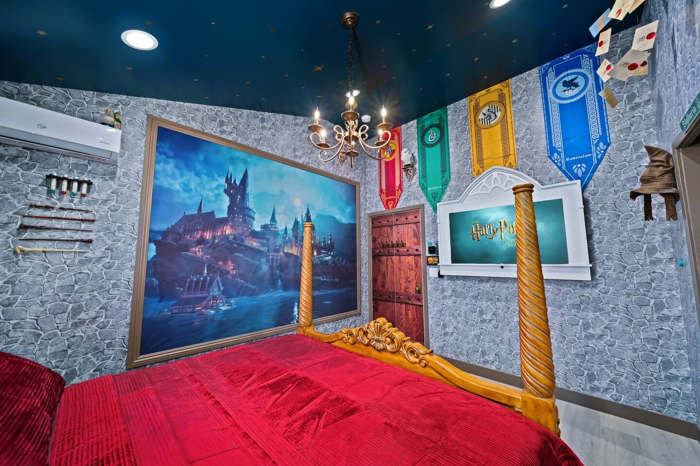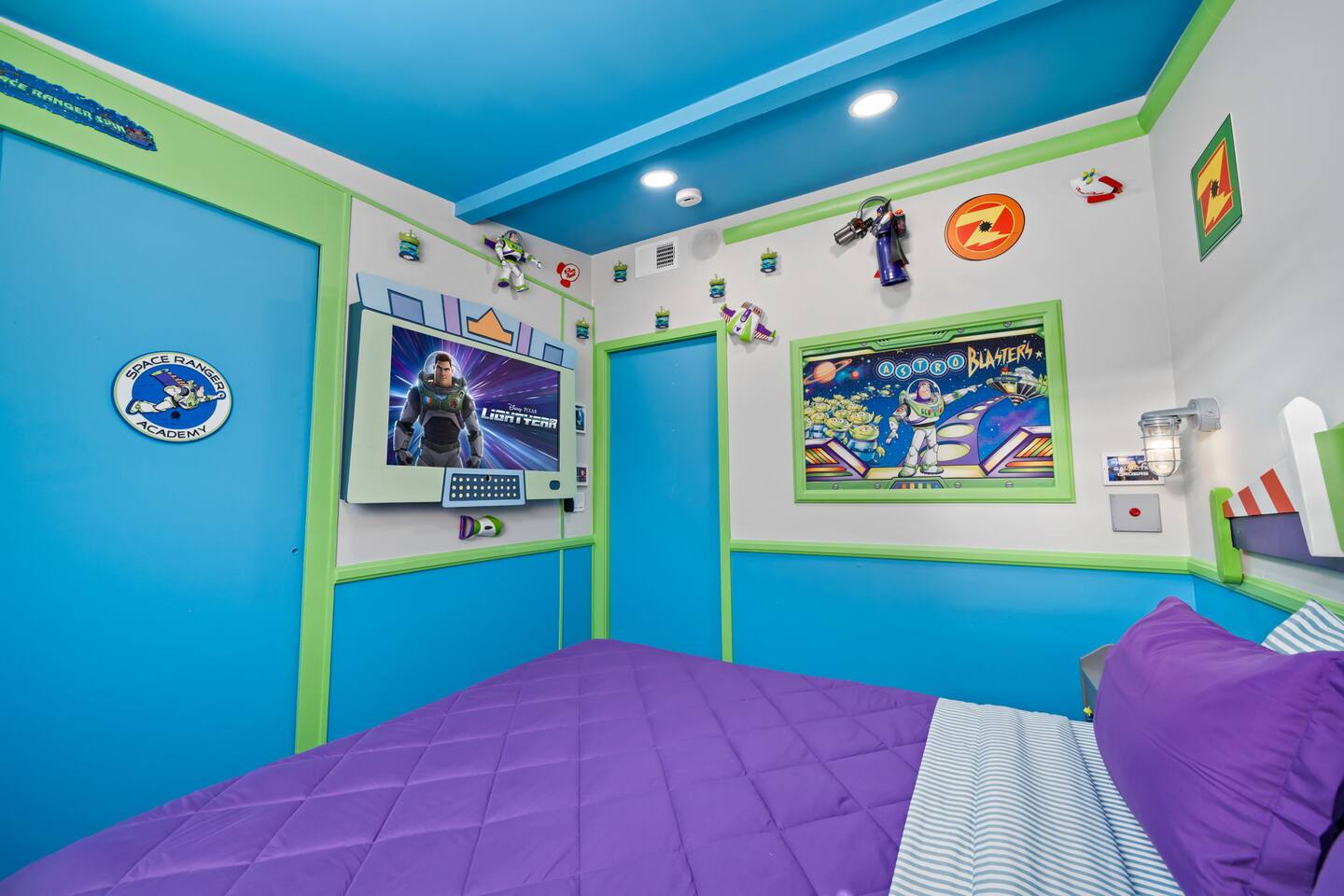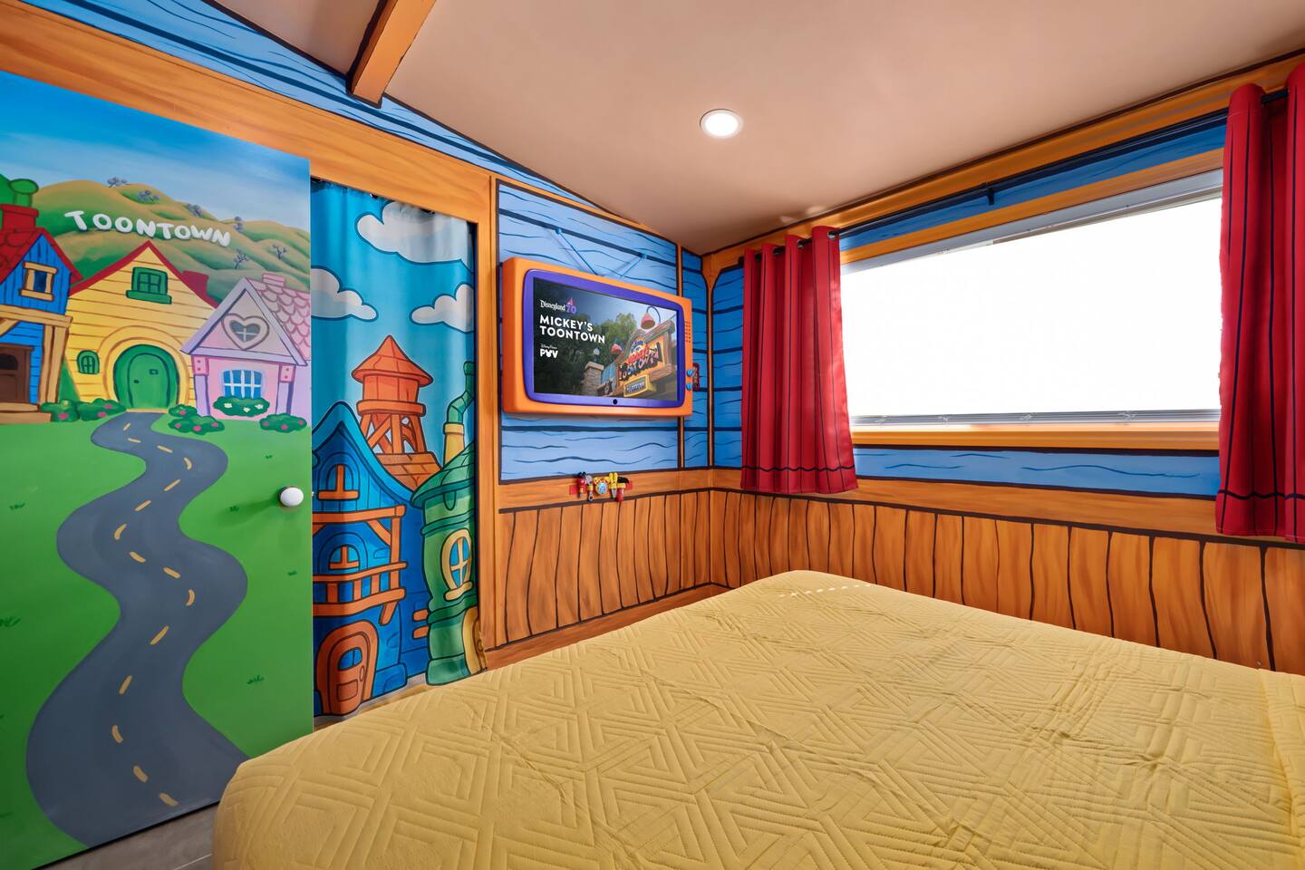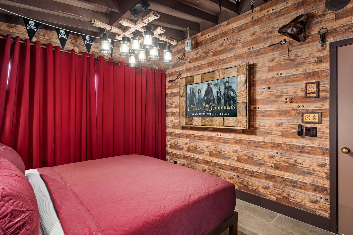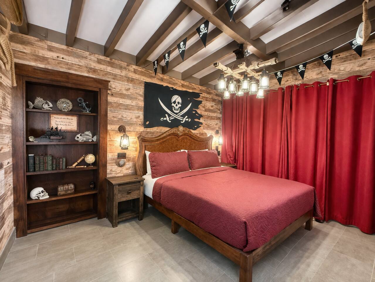 🎬✨ Welcome to the Ultimate Theme-Park Compound ✨🎬 Brought to you by OC Adventure Homes This one-of-a-kind retreat features two fully themed homes on one lot, designed to feel like your own private theme park. The front home brings classic Disney-inspired magic, while the second home delivers Universal-inspired adventure—all connected by a shared outdoor playland built for nonstop fun. Perfect for large families, multi-family trips, and group getaways, this is more than a place to stay—it’s an experience kids (and adults) will be talking about long after checkout. ⚠️ Please note: the maximum occupancy is 18 guests total, including all adults and children. 🏰 MAIN HOME – DISNEY-INSPIRED MAGIC Every room in the main house tells a story, blending nostalgia, imagination, and hidden surprises. 🦜 Pirates of the Caribbean Master Suite Step into a candle-lit pirate hideaway where adventure lurks behind every detail. Weathered textures, nautical accents, and dramatic lighting set the mood for a high-seas escape. ✔️ King Bed ✔️ Smart TV ✔️ Private ensuite bathroom ✔️ Secret bookcase entrance leading directly into the movie theater ✨ Peter Pan Kids’ Room A whimsical Neverland adventure where kids can fly off to dreamland. Designed for play, laughter, and late-night storytelling. ✔️ One Triple Bunk + One Double Bunk ✔️ 5 Total Beds ✔️ Smart TV ✔️ Bright, imaginative décor perfect for younger guests 🚀 Buzz Lightyear Space Bedroom Blast off into a sleek, space-inspired retreat filled with cosmic energy and futuristic touches. ✔️ Queen Bed ✔️ Smart TV ✔️ Clean, bold sci-fi theming 🏘️ Mickey’s Toontown Bedroom A playful, colorful space inspired by classic cartoon charm—bright, cheerful, and full of personality. ✔️ King Bed ✔️ Smart TV ✔️ Fun, animated design details 🎬 Indiana Jones Movie Theater & Free-Play Arcade Adventure takes center stage in this action-packed entertainment zone. 🗺️ Temple-inspired décor 🎥 Large-screen movie theater 🕹️ Free-to-play arcade machines 🍿 The perfect space for movie nights, rainy days, and epic family competitions ♠️ Alice in Wonderland Living Room & Kitchen Nothing is quite what it seems in this imaginative gathering space. This whimsical living room and kitchen combo is the heart of the home, designed for gathering, relaxing, and making memories together. 🛋️ Seating for 8 📺 Smart TV 🎮 Xbox One with free Xbox Game Pass Unlimited 🍽️ Kitchen stocked with cooking essentials 🥣 Cereal and snacks available for guests 🎲 Board games and family hangout vibes 🚿 Themed Bathrooms 🕯️ Haunted Mansion Bathroom – moody, mysterious, and atmospheric 🦜 Pirates of the Caribbean Bathroom – the private ensuite attached to the master suite, continuing the immersive pirate theming 🎥 SECOND HOME – UNIVERSAL-INSPIRED ADVENTURE Tucked behind the main house, the second home delivers blockbuster excitement with its own immersive worlds. ⚡ Harry Potter Master Suite A magical retreat filled with spellbinding details—perfect for witches, wizards, and fans of fantasy. ✔️ King Bed ✔️ Smart TV ✔️ Private Ensuite Bathroom 🍄 Super Mario Bedroom Bright, bold, and playful—this room feels like stepping into a video game world. ✔️ King Bed ✔️ Smart TV ✔️ Colorful, game-inspired design 🎭 Minions Kids’ Room A high-energy space bursting with fun, mischief, and laughter. ✔️ Two Triple Bunk Beds ✔️ 6 Total Twin Beds ✔️ Smart TV ✔️ Designed for kids to play hard, laugh loud, and sleep well 🦖 Jurassic Park Living Room & Kitchen A cinematic jungle escape with adventurous flair—perfect for relaxing between expeditions. This themed living room and kitchen combo has everything you need for a cozy stay in the second home. 🛋️ Comfortable seating 📺 Smart TV 🦕 Immersive dinosaur-inspired décor 🍽️ Dining for 4 🍳 Cooking essentials provided 🥣 Cereal and snacks available for guests 🚿 How to Train Your Dragon Bathroom Fantasy-inspired details bring this imaginative world to life in unexpected ways. 🌴 SHARED OUTDOOR PLAYLAND Both homes open to a shared backyard designed for kids to run, play, and explore while adults relax nearby. ⛳ Mini-golf 🎠 Kiddie rides, including a carousel 🏓 Ping pong 🏊 Pool with 4-foot depth throughout 🔒 Pool is gated on all sides for added child safety 🍽️ Outdoor dining area 🎯 Open play space and backyard fun for all ages 🏆 INTERACTIVE TREASURE HUNT EXPERIENCE This home also includes a themed treasure hunt competition where your group can choose Team Disney or Team Universal and face off to see which side comes out on top. Only one team can win — so choose wisely and get ready for some friendly competition. ✨ WHY GUESTS LOVE THIS HOME ✔️ Two homes = more space + more privacy ✔️ Every bedroom has a Smart TV ✔️ Free-to-play arcade games ✔️ Indoor + outdoor entertainment ✔️ Immersive theming throughout both homes ✔️ Treasure hunt competition built into the experience ✔️ Great for large families, reunions, and group trips