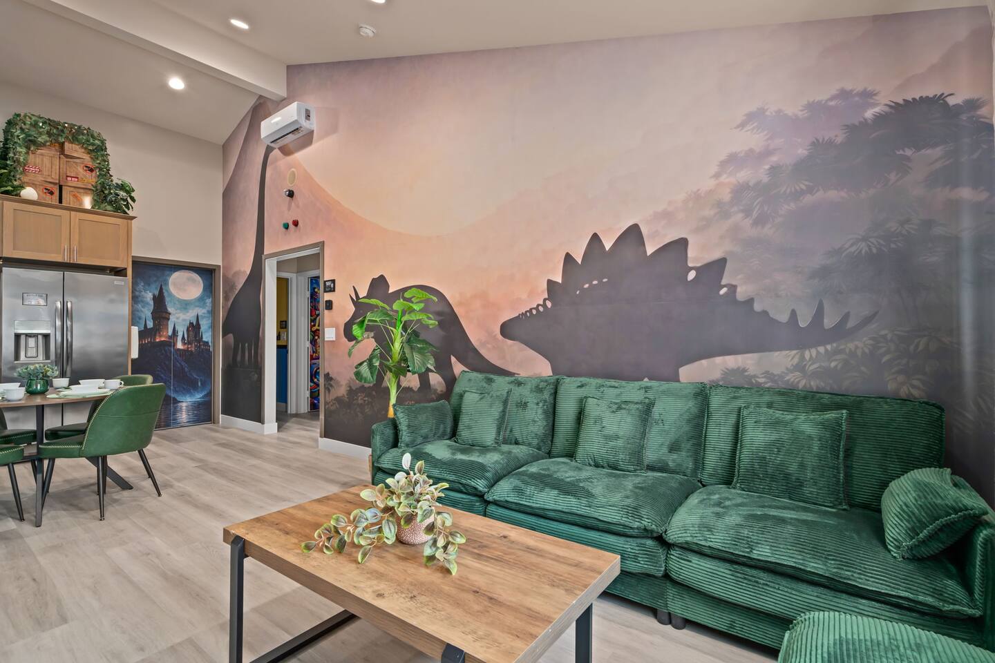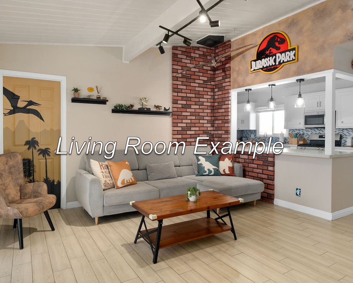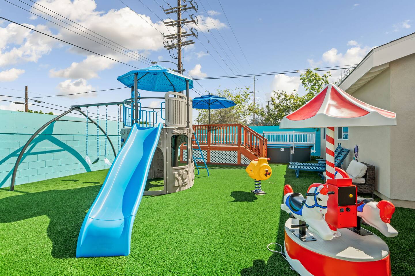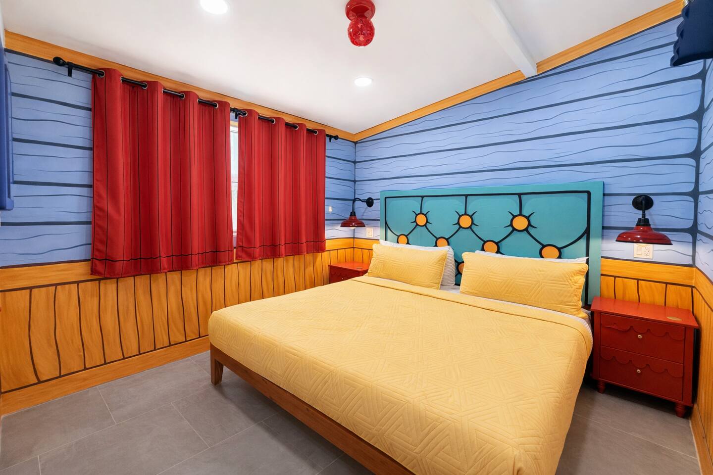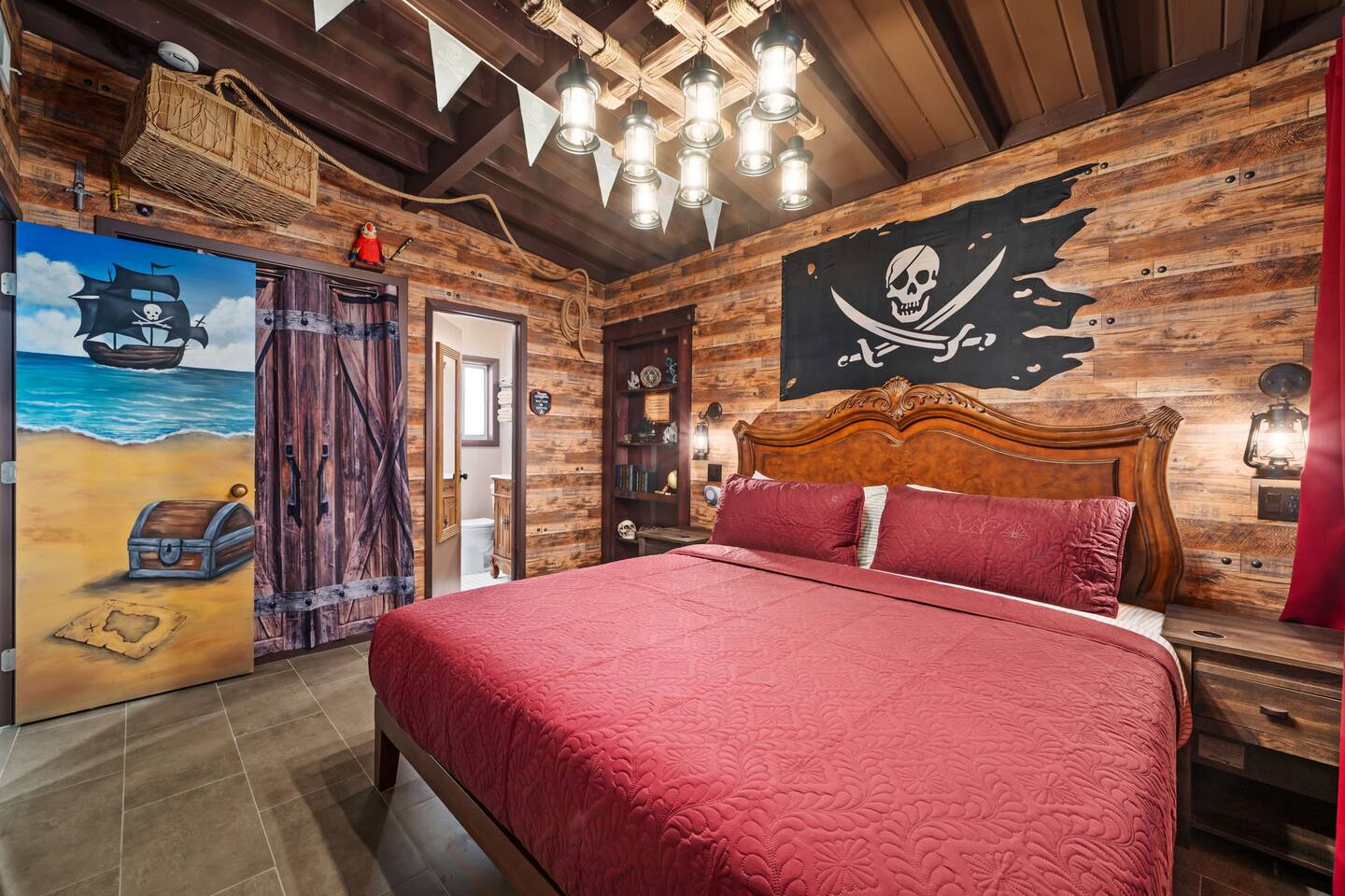 🎬✨ Welcome to the Ultimate Theme-Park Compound ✨🎬 Brought to you by OC Adventure Homes This one-of-a-kind retreat features two fully themed homes on one lot, designed to feel like your own private theme park. The front home brings classic Disney-inspired magic, while the second home delivers Universal-inspired adventure—all connected by a shared outdoor playland built for nonstop fun. Perfect for large families, multi-family trips, and group getaways, this is more than a place to stay—it’s an experience kids (and adults) will be talking about long after checkout. ⚠️ Please note: the maximum occupancy is 18 guests total, including all adults and children. 🏰 MAIN HOME – DISNEY-INSPIRED MAGIC Every room in the main house tells a story, blending nostalgia, imagination, and hidden surprises. 🦜 Pirates of the Caribbean Master Suite Step into a candle-lit pirate hideaway where adventure lurks behind every detail. Weathered textures, nautical accents, and dramatic lighting set the mood for a high-seas escape. ✔️ King Bed ✔️ Smart TV ✔️ Private ensuite bathroom ✔️ Secret bookcase entrance leading directly into the movie theater ✨ Peter Pan Kids’ Room A whimsical Neverland adventure where kids can fly off to dreamland. Designed for play, laughter, and late-night storytelling. ✔️ One Triple Bunk + One Double Bunk ✔️ 5 Total Beds ✔️ Smart TV ✔️ Bright, imaginative décor perfect for younger guests 🚀 Buzz Lightyear Space Bedroom Blast off into a sleek, space-inspired retreat filled with cosmic energy and futuristic touches. ✔️ Queen Bed ✔️ Smart TV ✔️ Clean, bold sci-fi theming 🏘️ Mickey’s Toontown Bedroom A playful, colorful space inspired by classic cartoon charm—bright, cheerful, and full of personality. ✔️ King Bed ✔️ Smart TV ✔️ Fun, animated design details 🎬 Indiana Jones Movie Theater & Free-Play Arcade Adventure takes center stage in this action-packed entertainment zone. 🗺️ Temple-inspired décor 🎥 Large-screen movie theater 🕹️ Free-to-play arcade machines 🍿 The perfect space for movie nights, rainy days, and epic family competitions ♠️ Alice in Wonderland Living Room & Kitchen Nothing is quite what it seems in this imaginative gathering space. This whimsical living room and kitchen combo is the heart of the home, designed for gathering, relaxing, and making memories together. 🛋️ Seating for 8 📺 Smart TV 🎮 Xbox One with free Xbox Game Pass Unlimited 🍽️ Kitchen stocked with cooking essentials 🥣 Cereal and snacks available for guests 🎲 Board games and family hangout vibes 🚿 Themed Bathrooms 🕯️ Haunted Mansion Bathroom – moody, mysterious, and atmospheric 🦜 Pirates of the Caribbean Bathroom – the private ensuite attached to the master suite, continuing the immersive pirate theming 🎥 SECOND HOME – UNIVERSAL-INSPIRED ADVENTURE Tucked behind the main house, the second home delivers blockbuster excitement with its own immersive worlds. ⚡ Harry Potter Master Suite A magical retreat filled with spellbinding details—perfect for witches, wizards, and fans of fantasy. ✔️ King Bed ✔️ Smart TV ✔️ Private Ensuite Bathroom 🍄 Super Mario Bedroom Bright, bold, and playful—this room feels like stepping into a video game world. ✔️ King Bed ✔️ Smart TV ✔️ Colorful, game-inspired design 🎭 Minions Kids’ Room A high-energy space bursting with fun, mischief, and laughter. ✔️ Two Triple Bunk Beds ✔️ 6 Total Twin Beds ✔️ Smart TV ✔️ Designed for kids to play hard, laugh loud, and sleep well 🦖 Jurassic Park Living Room & Kitchen A cinematic jungle escape with adventurous flair—perfect for relaxing between expeditions. This themed living room and kitchen combo has everything you need for a cozy stay in the second home. 🛋️ Comfortable seating 📺 Smart TV 🦕 Immersive dinosaur-inspired décor 🍽️ Dining for 4 🍳 Cooking essentials provided 🥣 Cereal and snacks available for guests 🚿 How to Train Your Dragon Bathroom Fantasy-inspired details bring this imaginative world to life in unexpected ways. 🌴 SHARED OUTDOOR PLAYLAND Both homes open to a shared backyard designed for kids to run, play, and explore while adults relax nearby. ⛳ Mini-golf 🎠 Kiddie rides, including a carousel 🏓 Ping pong 🏊 Pool with 4-foot depth throughout 🔒 Pool is gated on all sides for added child safety 🍽️ Outdoor dining area 🎯 Open play space and backyard fun for all ages 🏆 INTERACTIVE TREASURE HUNT EXPERIENCE This home also includes a themed treasure hunt competition where your group can choose Team Disney or Team Universal and face off to see which side comes out on top. Only one team can win — so choose wisely and get ready for some friendly competition. ✨ WHY GUESTS LOVE THIS HOME ✔️ Two homes = more space + more privacy ✔️ Every bedroom has a Smart TV ✔️ Free-to-play arcade games ✔️ Indoor + outdoor entertainment ✔️ Immersive theming throughout both homes ✔️ Treasure hunt competition built into the experience ✔️ Great for large families, reunions, and group trips