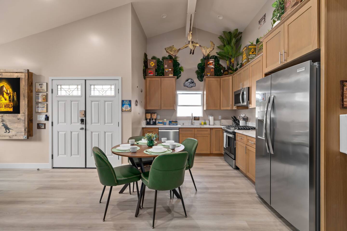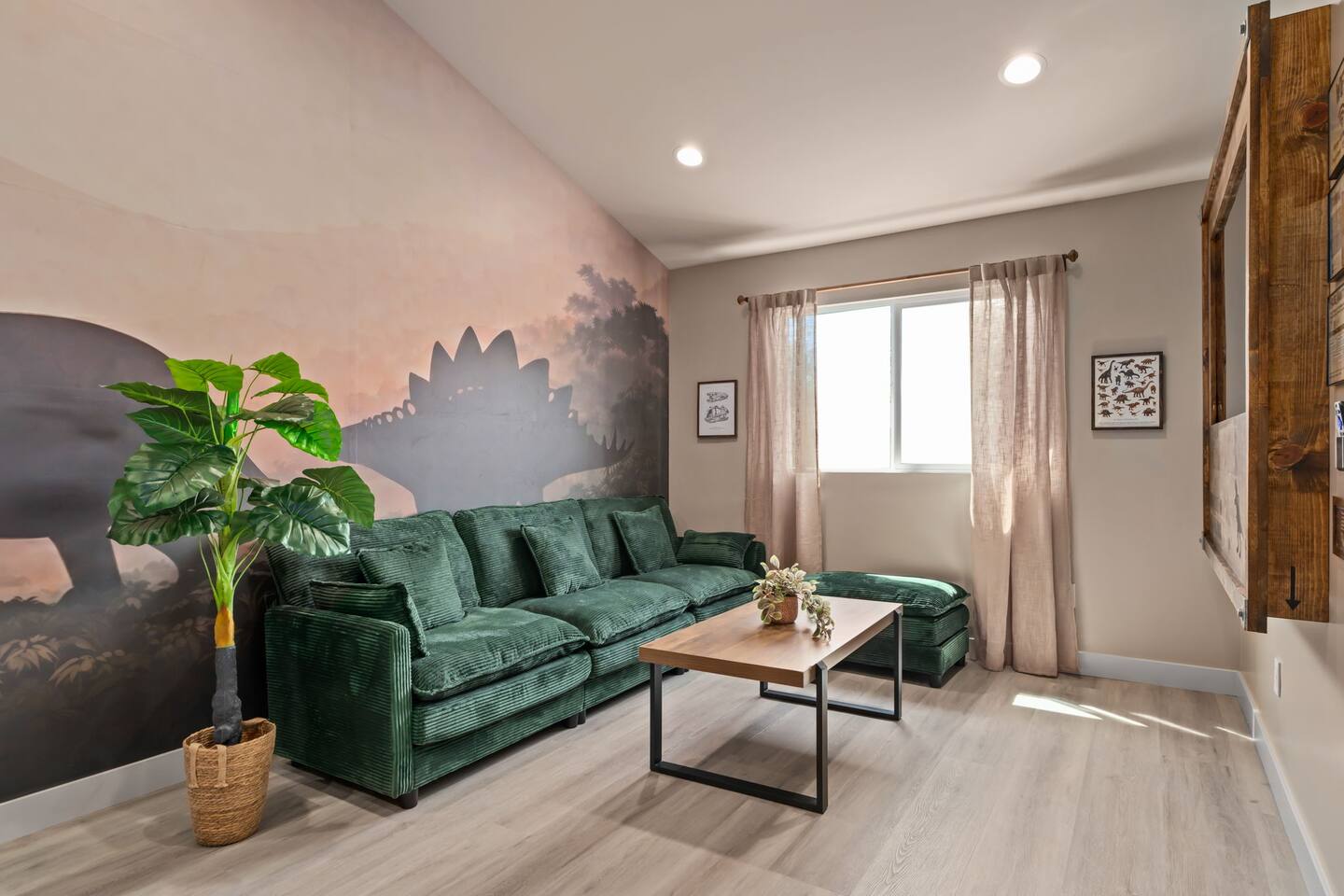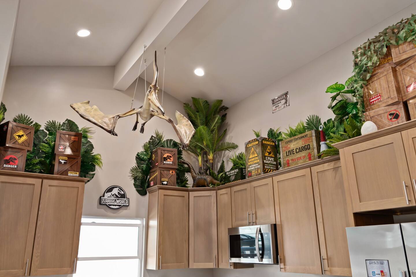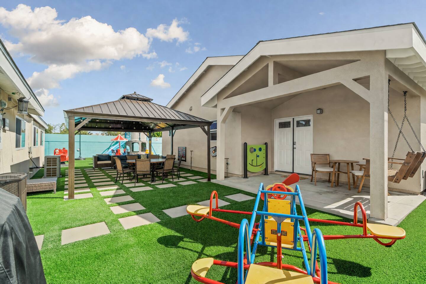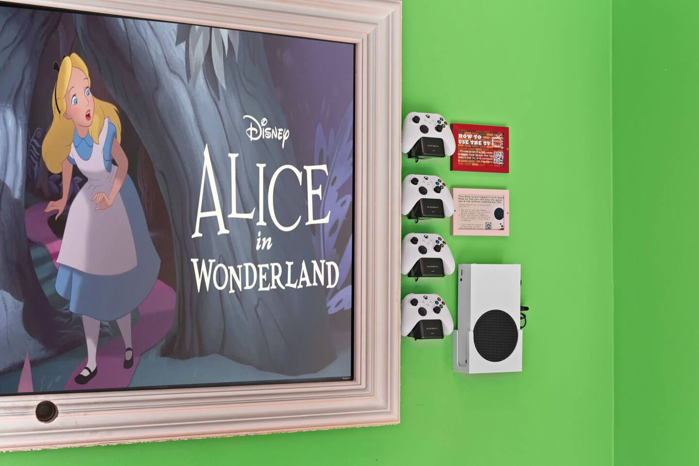 🎬✨ Welcome to the Ultimate Theme-Park Compound ✨🎬 Brought to you by OC Adventure Homes This one-of-a-kind retreat features two fully themed homes on one lot, designed to feel like your own private theme park. The front home brings classic Disney-inspired magic, while the second home delivers Universal-inspired adventure—all connected by a shared outdoor playland built for nonstop fun. Perfect for large families, multi-family trips, and group getaways, this is more than a place to stay—it’s an experience kids (and adults) will be talking about long after checkout. ⚠️ Please note: the maximum occupancy is 18 guests total, including all adults and children. 🏰 MAIN HOME – DISNEY-INSPIRED MAGIC Every room in the main house tells a story, blending nostalgia, imagination, and hidden surprises. 🦜 Pirates of the Caribbean Master Suite Step into a candle-lit pirate hideaway where adventure lurks behind every detail. Weathered textures, nautical accents, and dramatic lighting set the mood for a high-seas escape. ✔️ King Bed ✔️ Smart TV ✔️ Private ensuite bathroom ✔️ Secret bookcase entrance leading directly into the movie theater ✨ Peter Pan Kids’ Room A whimsical Neverland adventure where kids can fly off to dreamland. Designed for play, laughter, and late-night storytelling. ✔️ One Triple Bunk + One Double Bunk ✔️ 5 Total Beds ✔️ Smart TV ✔️ Bright, imaginative décor perfect for younger guests 🚀 Buzz Lightyear Space Bedroom Blast off into a sleek, space-inspired retreat filled with cosmic energy and futuristic touches. ✔️ Queen Bed ✔️ Smart TV ✔️ Clean, bold sci-fi theming 🏘️ Mickey’s Toontown Bedroom A playful, colorful space inspired by classic cartoon charm—bright, cheerful, and full of personality. ✔️ King Bed ✔️ Smart TV ✔️ Fun, animated design details 🎬 Indiana Jones Movie Theater & Free-Play Arcade Adventure takes center stage in this action-packed entertainment zone. 🗺️ Temple-inspired décor 🎥 Large-screen movie theater 🕹️ Free-to-play arcade machines 🍿 The perfect space for movie nights, rainy days, and epic family competitions ♠️ Alice in Wonderland Living Room & Kitchen Nothing is quite what it seems in this imaginative gathering space. This whimsical living room and kitchen combo is the heart of the home, designed for gathering, relaxing, and making memories together. 🛋️ Seating for 8 📺 Smart TV 🎮 Xbox One with free Xbox Game Pass Unlimited 🍽️ Kitchen stocked with cooking essentials 🥣 Cereal and snacks available for guests 🎲 Board games and family hangout vibes 🚿 Themed Bathrooms 🕯️ Haunted Mansion Bathroom – moody, mysterious, and atmospheric 🦜 Pirates of the Caribbean Bathroom – the private ensuite attached to the master suite, continuing the immersive pirate theming 🎥 SECOND HOME – UNIVERSAL-INSPIRED ADVENTURE Tucked behind the main house, the second home delivers blockbuster excitement with its own immersive worlds. ⚡ Harry Potter Master Suite A magical retreat filled with spellbinding details—perfect for witches, wizards, and fans of fantasy. ✔️ King Bed ✔️ Smart TV ✔️ Private Ensuite Bathroom 🍄 Super Mario Bedroom Bright, bold, and playful—this room feels like stepping into a video game world. ✔️ King Bed ✔️ Smart TV ✔️ Colorful, game-inspired design 🎭 Minions Kids’ Room A high-energy space bursting with fun, mischief, and laughter. ✔️ Two Triple Bunk Beds ✔️ 6 Total Twin Beds ✔️ Smart TV ✔️ Designed for kids to play hard, laugh loud, and sleep well 🦖 Jurassic Park Living Room & Kitchen A cinematic jungle escape with adventurous flair—perfect for relaxing between expeditions. This themed living room and kitchen combo has everything you need for a cozy stay in the second home. 🛋️ Comfortable seating 📺 Smart TV 🦕 Immersive dinosaur-inspired décor 🍽️ Dining for 4 🍳 Cooking essentials provided 🥣 Cereal and snacks available for guests 🚿 How to Train Your Dragon Bathroom Fantasy-inspired details bring this imaginative world to life in unexpected ways. 🌴 SHARED OUTDOOR PLAYLAND Both homes open to a shared backyard designed for kids to run, play, and explore while adults relax nearby. ⛳ Mini-golf 🎠 Kiddie rides, including a carousel 🏓 Ping pong 🏊 Pool with 4-foot depth throughout 🔒 Pool is gated on all sides for added child safety 🍽️ Outdoor dining area 🎯 Open play space and backyard fun for all ages 🏆 INTERACTIVE TREASURE HUNT EXPERIENCE This home also includes a themed treasure hunt competition where your group can choose Team Disney or Team Universal and face off to see which side comes out on top. Only one team can win — so choose wisely and get ready for some friendly competition. ✨ WHY GUESTS LOVE THIS HOME ✔️ Two homes = more space + more privacy ✔️ Every bedroom has a Smart TV ✔️ Free-to-play arcade games ✔️ Indoor + outdoor entertainment ✔️ Immersive theming throughout both homes ✔️ Treasure hunt competition built into the experience ✔️ Great for large families, reunions, and group trips