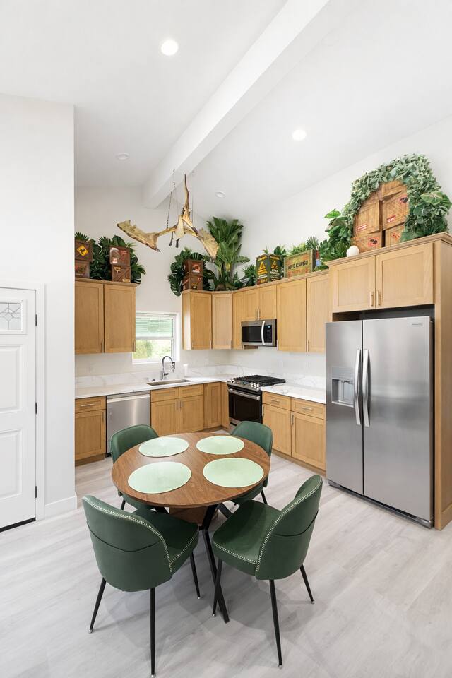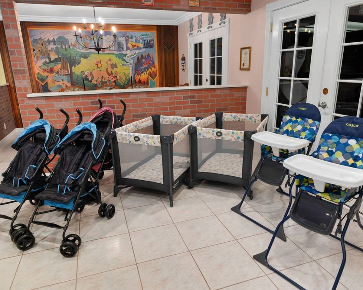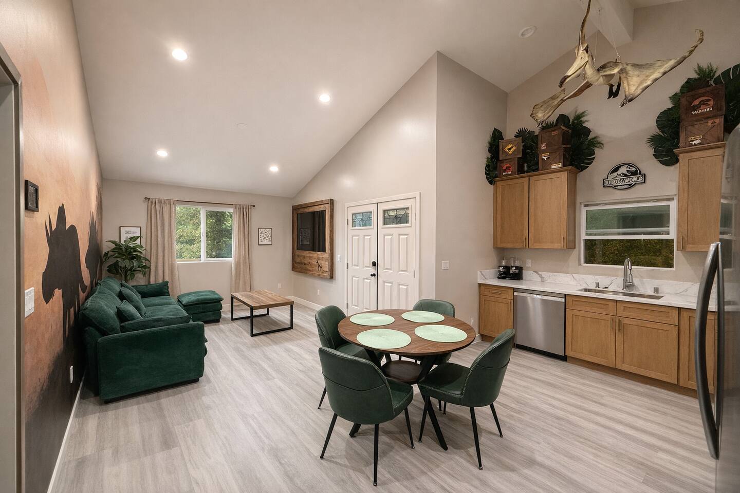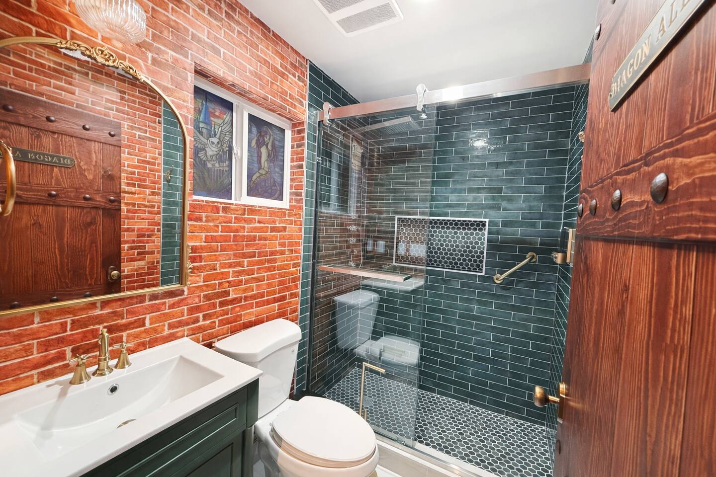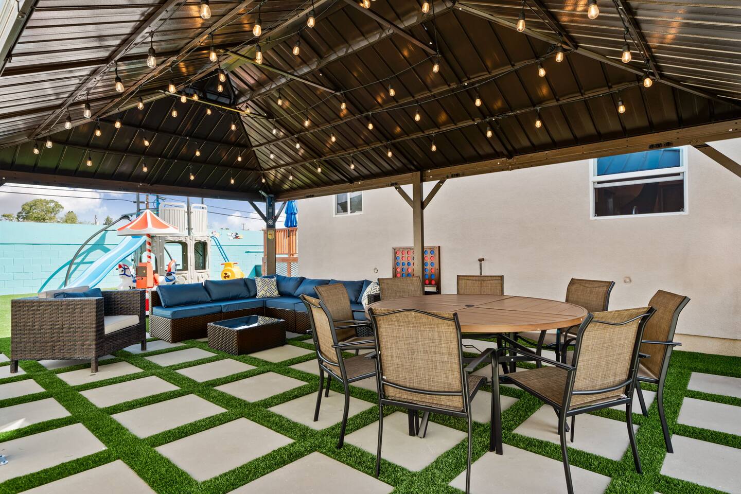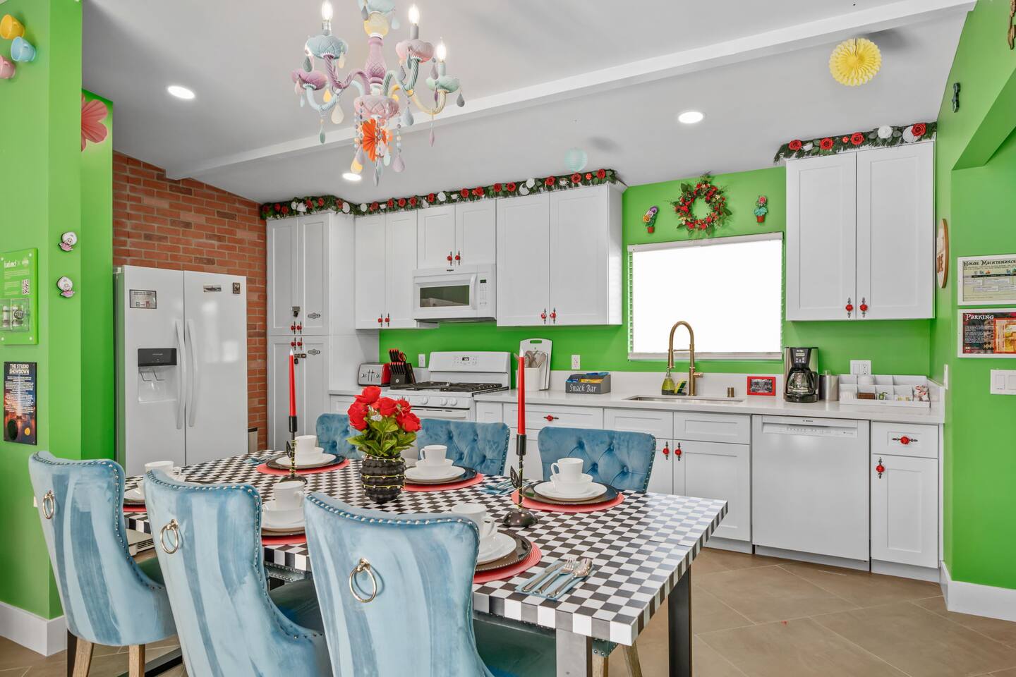 🎬✨ Welcome to the Ultimate Theme-Park Compound ✨🎬 Brought to you by OC Adventure Homes This one-of-a-kind retreat features two fully themed homes on one lot, designed to feel like your own private theme park. The front home brings classic Disney-inspired magic, while the second home delivers Universal-inspired adventure—all connected by a shared outdoor playland built for nonstop fun. Perfect for large families, multi-family trips, and group getaways, this is more than a place to stay—it’s an experience kids (and adults) will be talking about long after checkout. ⚠️ Please note: the maximum occupancy is 18 guests total, including all adults and children. 🏰 MAIN HOME – DISNEY-INSPIRED MAGIC Every room in the main house tells a story, blending nostalgia, imagination, and hidden surprises. 🦜 Pirates of the Caribbean Master Suite Step into a candle-lit pirate hideaway where adventure lurks behind every detail. Weathered textures, nautical accents, and dramatic lighting set the mood for a high-seas escape. ✔️ King Bed ✔️ Smart TV ✔️ Private ensuite bathroom ✔️ Secret bookcase entrance leading directly into the movie theater ✨ Peter Pan Kids’ Room A whimsical Neverland adventure where kids can fly off to dreamland. Designed for play, laughter, and late-night storytelling. ✔️ One Triple Bunk + One Double Bunk ✔️ 5 Total Beds ✔️ Smart TV ✔️ Bright, imaginative décor perfect for younger guests 🚀 Buzz Lightyear Space Bedroom Blast off into a sleek, space-inspired retreat filled with cosmic energy and futuristic touches. ✔️ Queen Bed ✔️ Smart TV ✔️ Clean, bold sci-fi theming 🏘️ Mickey’s Toontown Bedroom A playful, colorful space inspired by classic cartoon charm—bright, cheerful, and full of personality. ✔️ King Bed ✔️ Smart TV ✔️ Fun, animated design details 🎬 Indiana Jones Movie Theater & Free-Play Arcade Adventure takes center stage in this action-packed entertainment zone. 🗺️ Temple-inspired décor 🎥 Large-screen movie theater 🕹️ Free-to-play arcade machines 🍿 The perfect space for movie nights, rainy days, and epic family competitions ♠️ Alice in Wonderland Living Room & Kitchen Nothing is quite what it seems in this imaginative gathering space. This whimsical living room and kitchen combo is the heart of the home, designed for gathering, relaxing, and making memories together. 🛋️ Seating for 8 📺 Smart TV 🎮 Xbox One with free Xbox Game Pass Unlimited 🍽️ Kitchen stocked with cooking essentials 🥣 Cereal and snacks available for guests 🎲 Board games and family hangout vibes 🚿 Themed Bathrooms 🕯️ Haunted Mansion Bathroom – moody, mysterious, and atmospheric 🦜 Pirates of the Caribbean Bathroom – the private ensuite attached to the master suite, continuing the immersive pirate theming 🎥 SECOND HOME – UNIVERSAL-INSPIRED ADVENTURE Tucked behind the main house, the second home delivers blockbuster excitement with its own immersive worlds. ⚡ Harry Potter Master Suite A magical retreat filled with spellbinding details—perfect for witches, wizards, and fans of fantasy. ✔️ King Bed ✔️ Smart TV ✔️ Private Ensuite Bathroom 🍄 Super Mario Bedroom Bright, bold, and playful—this room feels like stepping into a video game world. ✔️ King Bed ✔️ Smart TV ✔️ Colorful, game-inspired design 🎭 Minions Kids’ Room A high-energy space bursting with fun, mischief, and laughter. ✔️ Two Triple Bunk Beds ✔️ 6 Total Twin Beds ✔️ Smart TV ✔️ Designed for kids to play hard, laugh loud, and sleep well 🦖 Jurassic Park Living Room & Kitchen A cinematic jungle escape with adventurous flair—perfect for relaxing between expeditions. This themed living room and kitchen combo has everything you need for a cozy stay in the second home. 🛋️ Comfortable seating 📺 Smart TV 🦕 Immersive dinosaur-inspired décor 🍽️ Dining for 4 🍳 Cooking essentials provided 🥣 Cereal and snacks available for guests 🚿 How to Train Your Dragon Bathroom Fantasy-inspired details bring this imaginative world to life in unexpected ways. 🌴 SHARED OUTDOOR PLAYLAND Both homes open to a shared backyard designed for kids to run, play, and explore while adults relax nearby. ⛳ Mini-golf 🎠 Kiddie rides, including a carousel 🏓 Ping pong 🏊 Pool with 4-foot depth throughout 🔒 Pool is gated on all sides for added child safety 🍽️ Outdoor dining area 🎯 Open play space and backyard fun for all ages 🏆 INTERACTIVE TREASURE HUNT EXPERIENCE This home also includes a themed treasure hunt competition where your group can choose Team Disney or Team Universal and face off to see which side comes out on top. Only one team can win — so choose wisely and get ready for some friendly competition. ✨ WHY GUESTS LOVE THIS HOME ✔️ Two homes = more space + more privacy ✔️ Every bedroom has a Smart TV ✔️ Free-to-play arcade games ✔️ Indoor + outdoor entertainment ✔️ Immersive theming throughout both homes ✔️ Treasure hunt competition built into the experience ✔️ Great for large families, reunions, and group trips