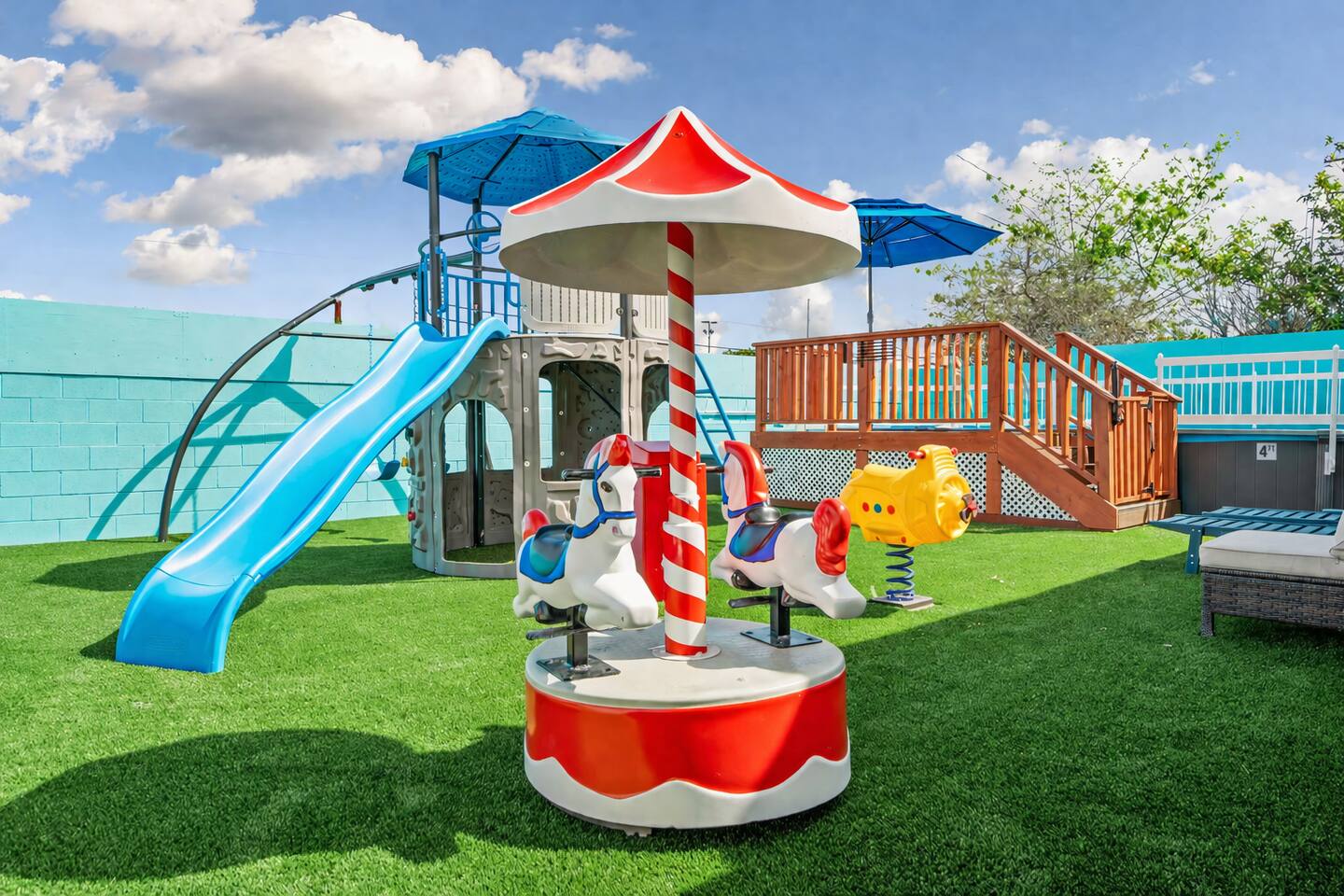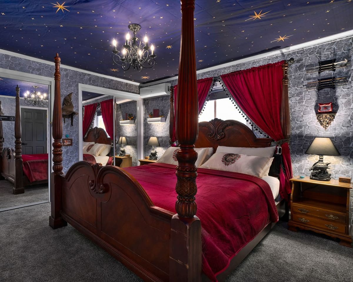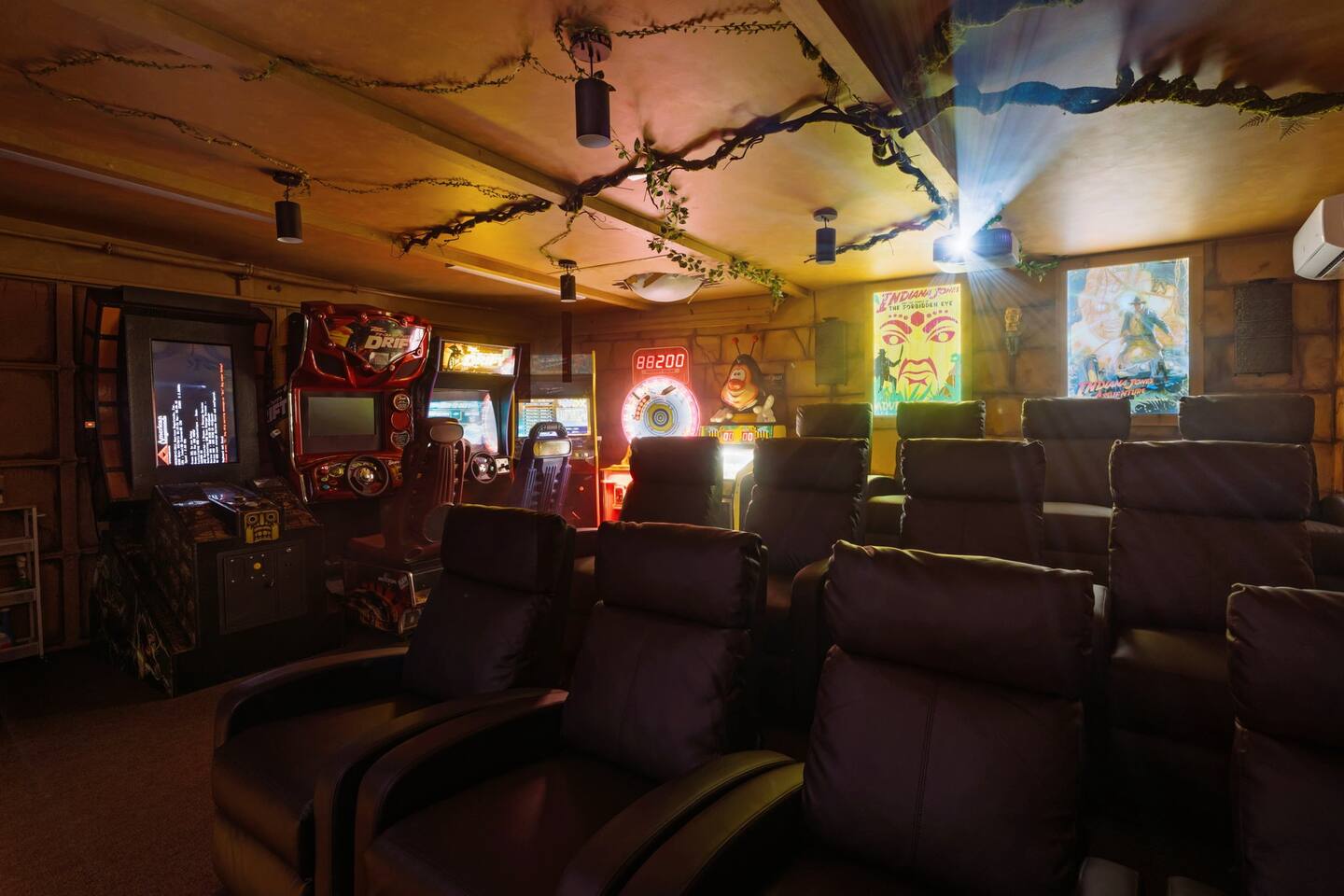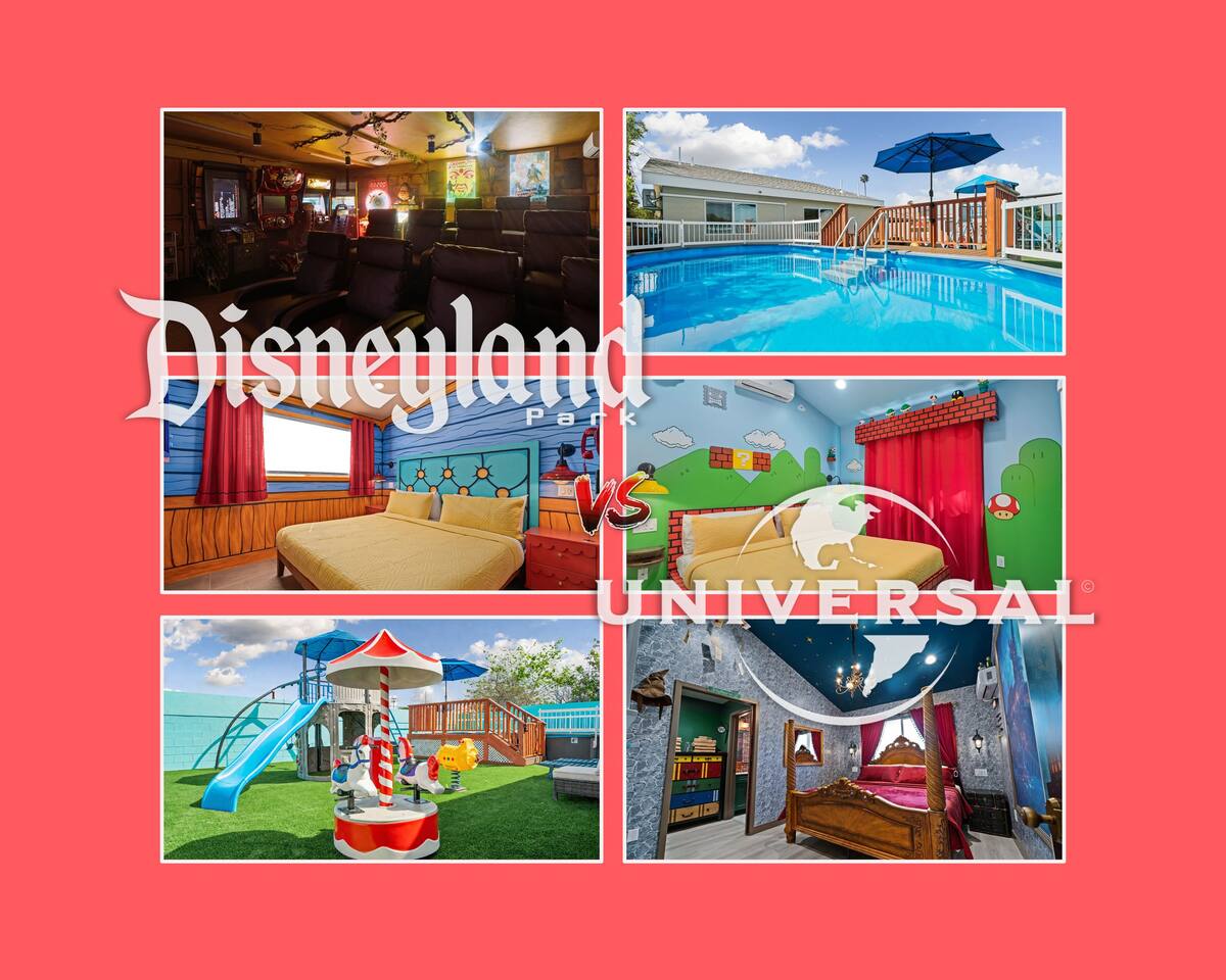 🎢 Welcome to the Ultimate Theme Park Retreat! ✨ Enjoy 2 themed homes on 1 lot—one Disney-inspired and one Universal-inspired—filled with immersive rooms, secret passages, and nonstop fun for the whole family. Highlights: 🛏️ 7 themed bedrooms 🎬 Indiana Jones theater + free-play arcade 🌴 Large yard with gated pool, mini-golf, ping pong, kiddie rides & carousel 🏆 Disney vs. Universal treasure hunt challenge Max occupancy: 18 guests total, including kids and adults.
